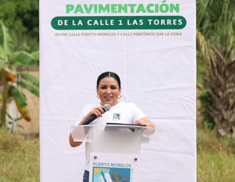 Leona Vicario, Puerto Morelos, Quintana Roo, 9 de noviembre de 2025.— “En esta Delegación luchamos con trabajo coordinado, buena voluntad y compromiso para superar el abandono en el que estuvo por décadas”, expresó la presidenta municipal Blanca Merari Tziu Muñoz durante el banderazo de inicio de la pavimentación de 140 metros lineales de la Calle 1 Las Torres, entre Puerto Morelos y Periférico Sur La Ceiba.