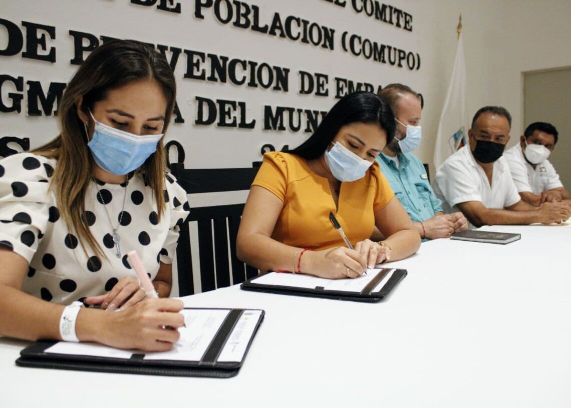 Puerto Morelos, Quintana Roo, 24 de noviembre de 2021.- Es tiempo de trabajar en la generación de políticas públicas que incidan en el desarrollo de la sociedad y crecimiento ordenado del municipio, comentó la alcaldesa Blanca Merari Tziu Muñoz durante la firma de convenio e instalación del Comité del Consejo Municipal de Población (Comupo) y el Grupo Municipal de Prevención de Embarazo en Adolescentes (Gmupea) de Puerto Morelos.