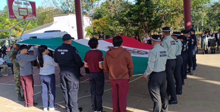 En representación de la presidenta municipal, Blanca Merari Tziu Muñoz, el secretario de Seguridad Ciudadana, Tte. de Navío Manuel Alejandro Nava García, realizó la entrega de una nueva bandera a la escolta de la institución, acto que refuerza el sentido de identidad y respeto a los símbolos patrios.