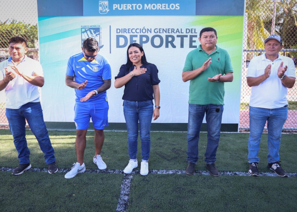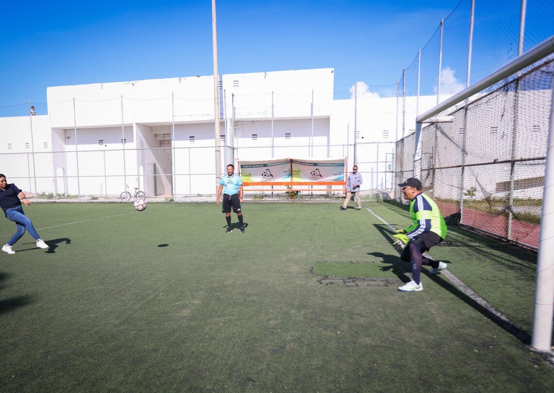 Puerto Morelos, Quintana Roo, 21 de junio de 2023.- La presidenta municipal Blanca Merari Tziu Muñoz dio la patada inaugural del torneo relámpago empresarial de Fútbol 7 y presenció el torneo de box con el que inauguró oficialmente el gimnasio municipal Luis “Duro” May.