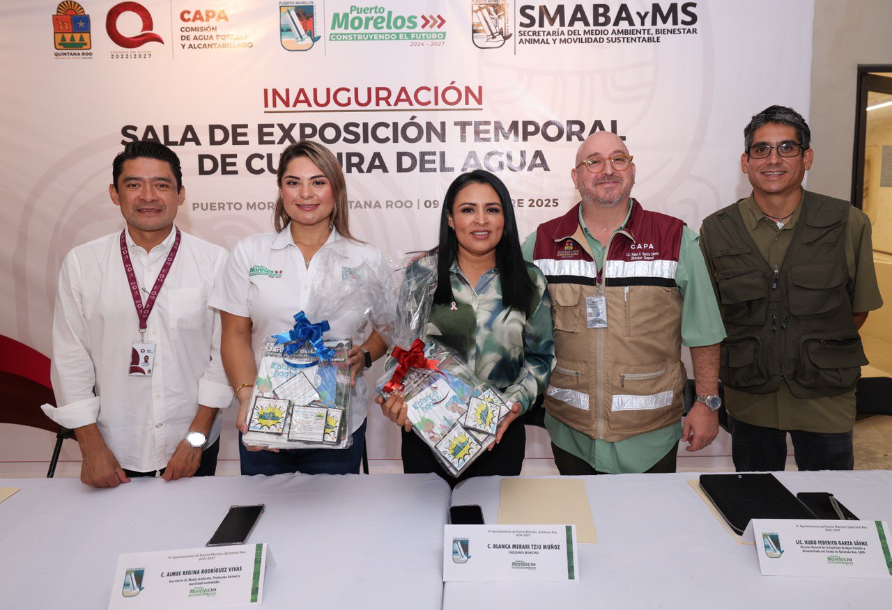 Puerto Morelos, Quintana Roo, 10 de octubre de 2025.– “El acceso al agua es un derecho humano que, como autoridad, estamos obligados a garantizar a la población, ya que esta no solo representa un bien económico, sino un derecho social y cultural indispensable para la vida”, afirmó la presidenta municipal Blanca Merari Tziu Muñoz al inaugurar la Sala de Exposición Temporal de Cultura del Agua, organizada por la Comisión de Agua Potable y Alcantarillado (CAPA) del Gobierno de Quintana Roo.