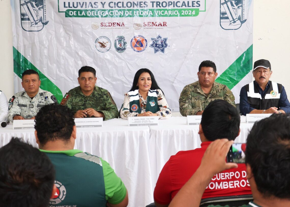 Leona Vicario, Puerto Morelos, Quintana Roo, 18 de junio de 2024.- Con el objetivo de salvaguardar la integridad de los habitantes de Leona Vicario, la presidenta municipal Blanca Merari Tziu Muñoz instaló esta mañana el Subcomité Operativo Municipal para la Temporada de Lluvias y Ciclones Tropicales 2024, para esta delegación.