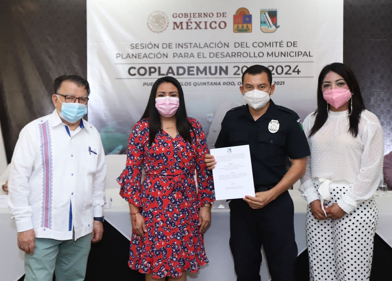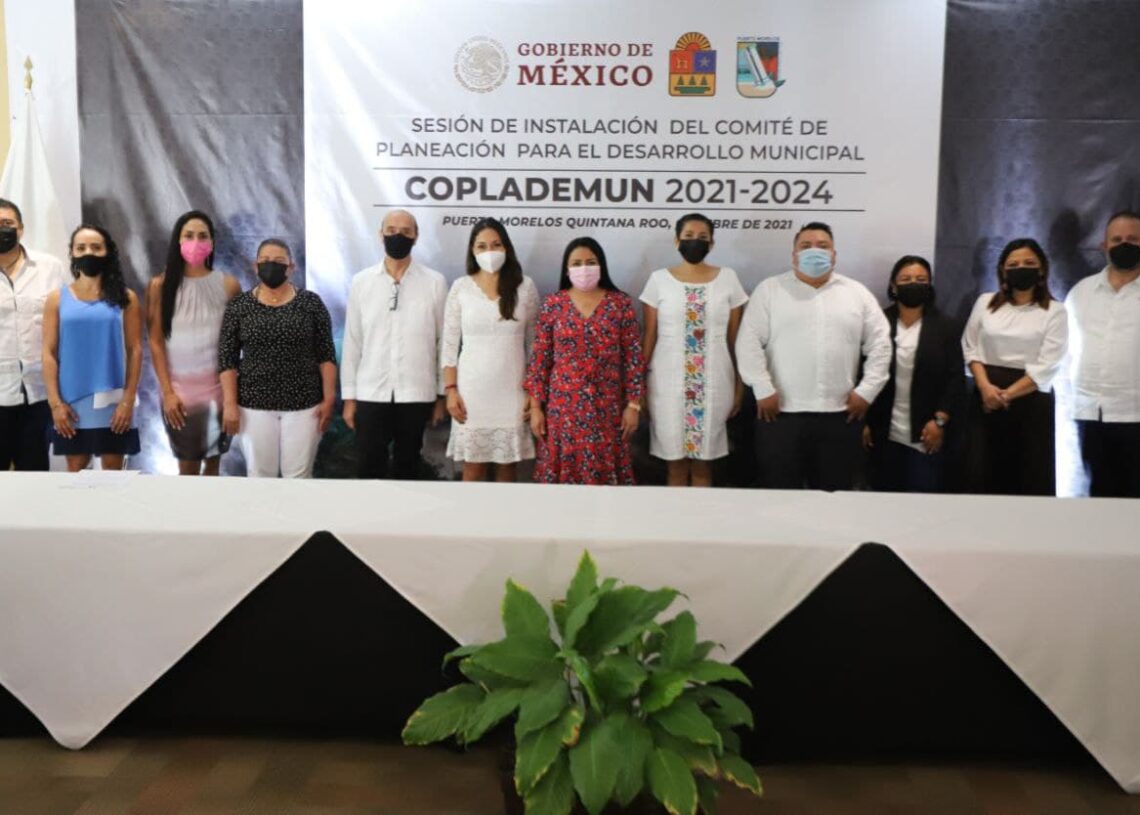 Puerto Morelos, Quintana Roo, 26 de octubre de 2021.- Con la enorme responsabilidad de generar una planeación profundamente democrática del progreso en Puerto Morelos y como un acto armónico entre el ayuntamiento, los diferentes grupos ciudadanos y autoridades estatales y federales, el gobierno de la alcaldesa Blanca Merari Tziu Muñoz instaló hoy el Comité de Planeación para el Desarrollo Municipal (Coplademun), periodo 2021-2024.