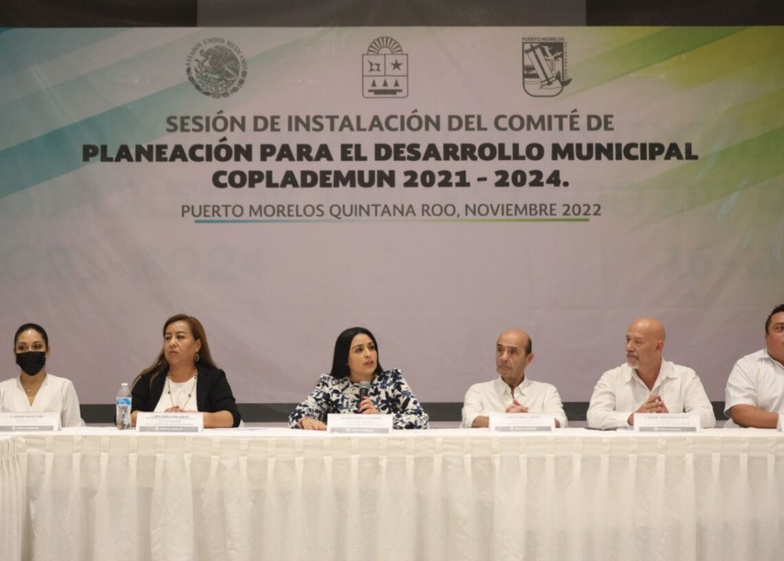 Puerto Morelos, Quintana Roo, 18 de noviembre de 2022.- En apego a la nueva Ley de Planeación para el Desarrollo del Estado de Quintana Roo, publicada en el Periódico Oficial del Estado el pasado 15 de agosto de 2022, el gobierno de Puerto Morelos llevó a cabo la instalación del Comité de Planeación para el Desarrollo Municipal (Coplademun) para el periodo 2021-2024, encabezado por la presidenta municipal, Blanca Merari Tziu Muñoz.