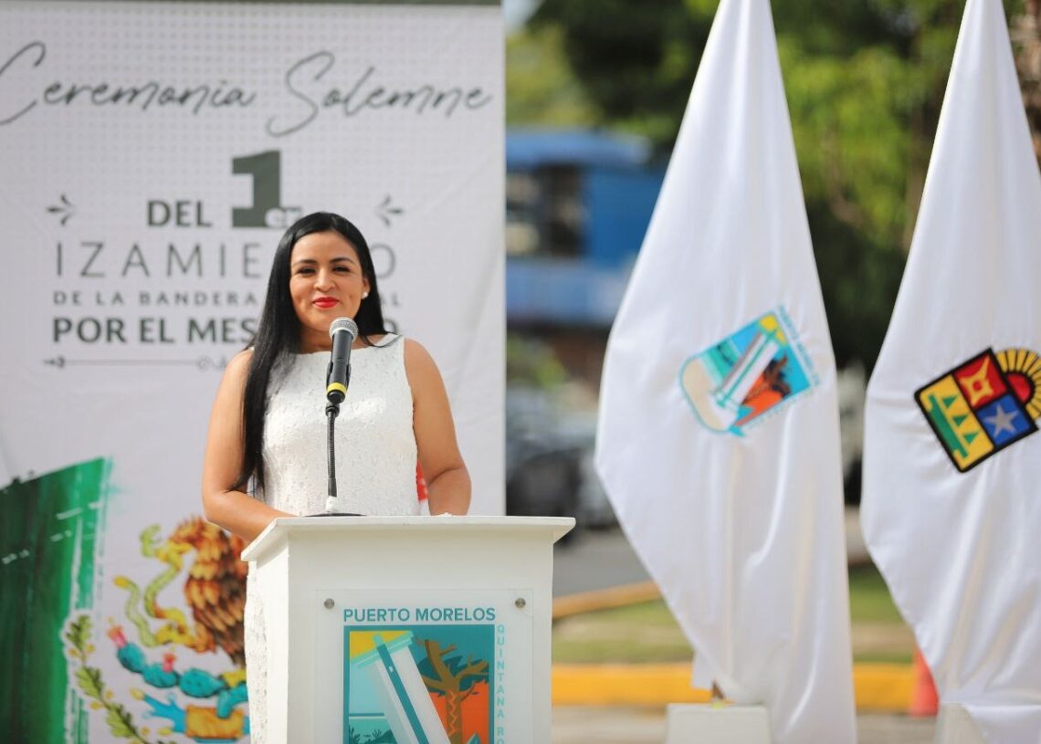 Puerto Morelos, Quintana Roo, 1 de septiembre de 2022.- Septiembre simboliza la fuerza, la solidaridad y la lealtad a la patria que como pueblo hemos demostrado a lo largo de los siglos, destacó la presidenta municipal Blanca Merari Tziu Muñoz al encabezar la ceremonia cívica de izamiento de bandera con motivo del inicio del mes patrio.