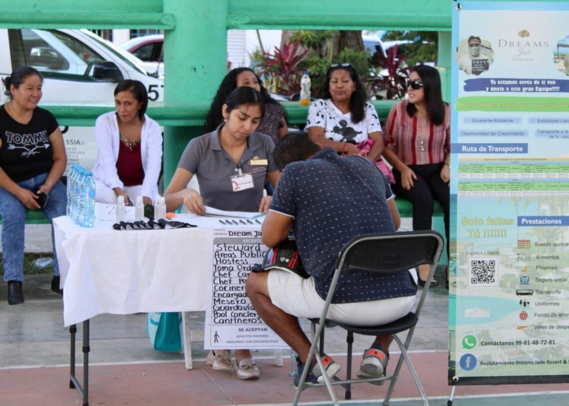 Cada vez más empresas, no sólo del sector turístico, se suman para participar en las ferias del empleo que organizamos periódicamente, como la cadena Villas del Palmar, tiendas Chedraui, agencias de seguridad privada, Costamed, Farmacias Yza, cadena Oxxo, tiendas de autoservicio y empacadoras de carnes frías.