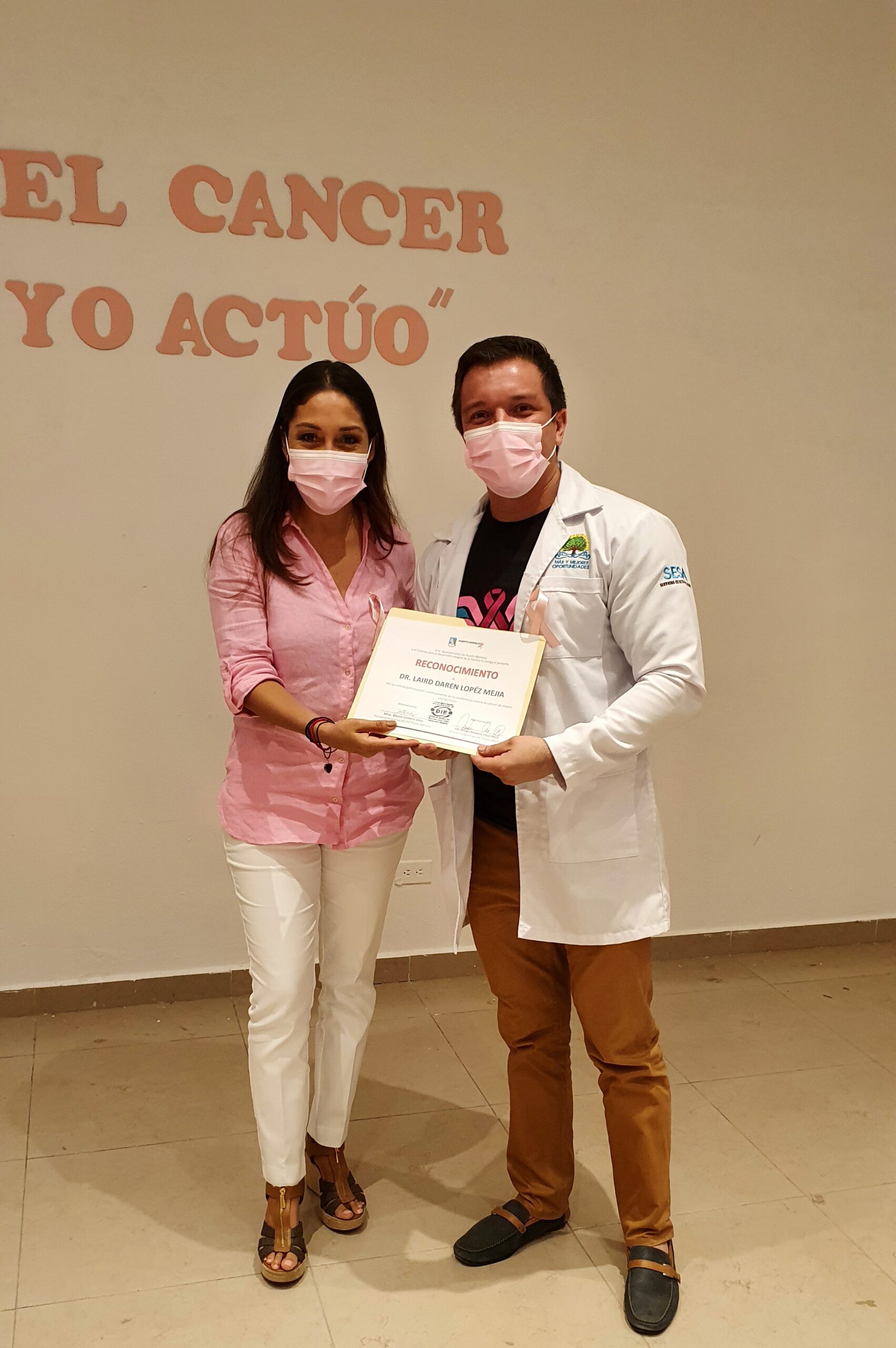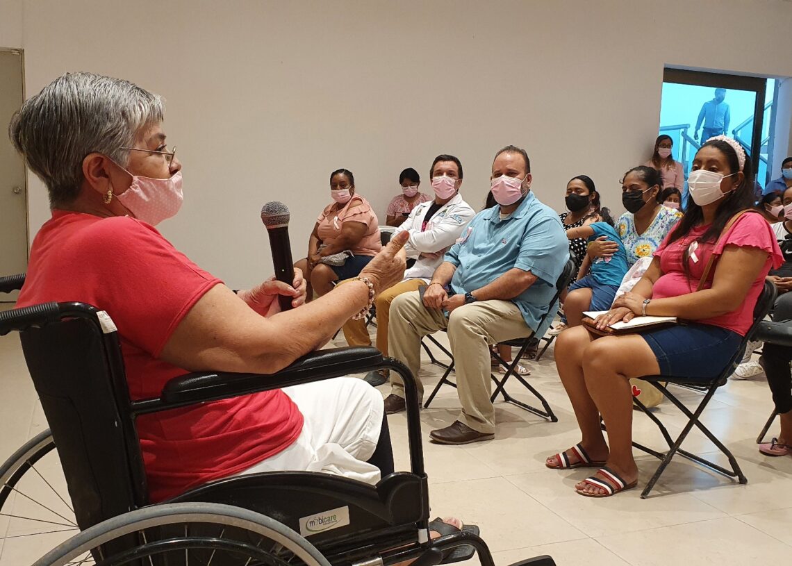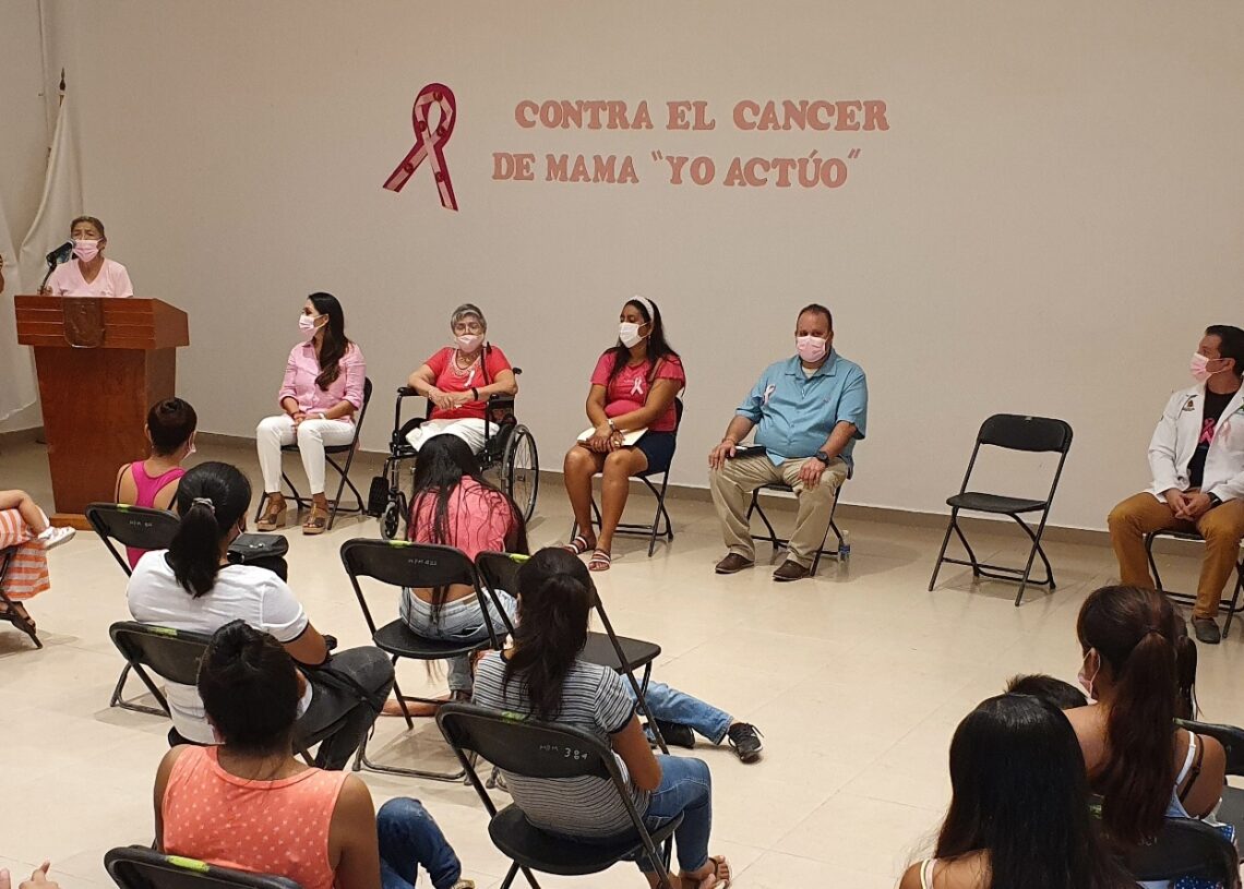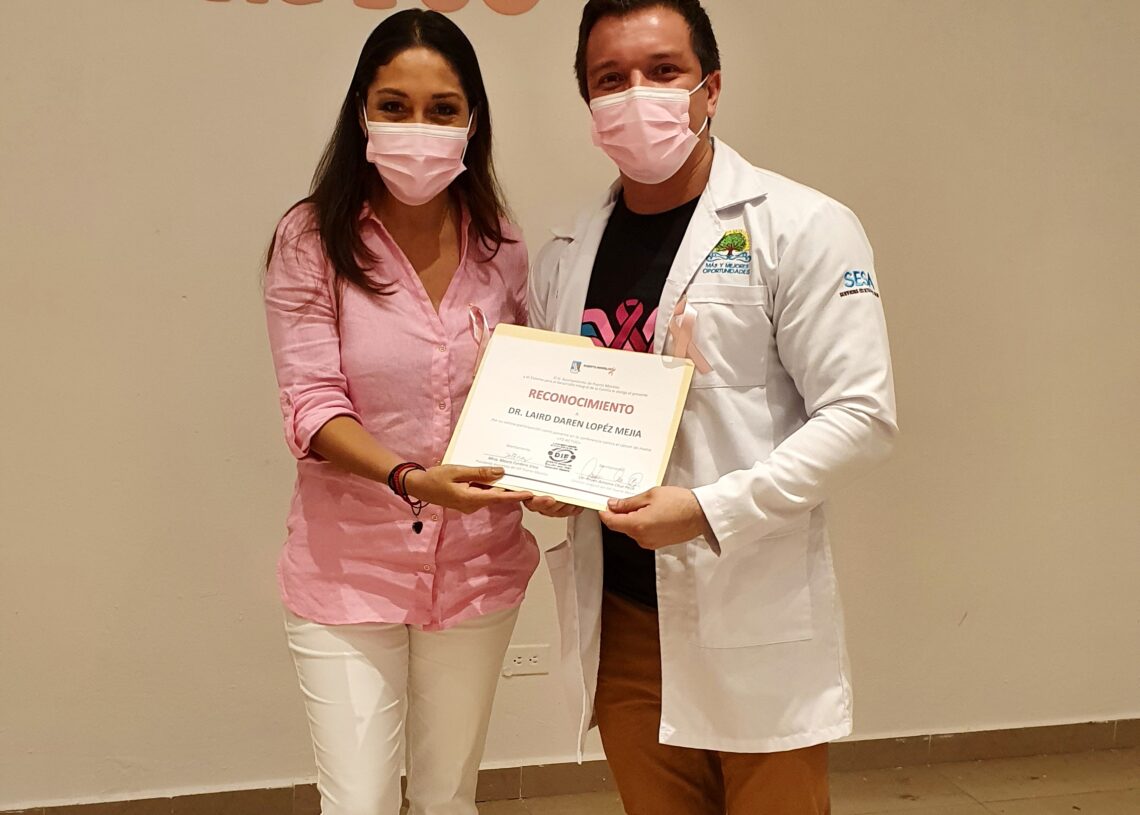 Puerto Morelos, Quintana Roo, 19 de octubre de 2021.- El Sistema para el Desarrollo Integral de la Familia (DIF) de Puerto Morelos impartió la plática “Contra el cáncer de mama, yo actúo”, a cargo del director del Centro de Salud, Laird Darén López Mejía, en el marco del Día Mundial de la Lucha contra el Cáncer de Mama que se conmemora el 19 de octubre.