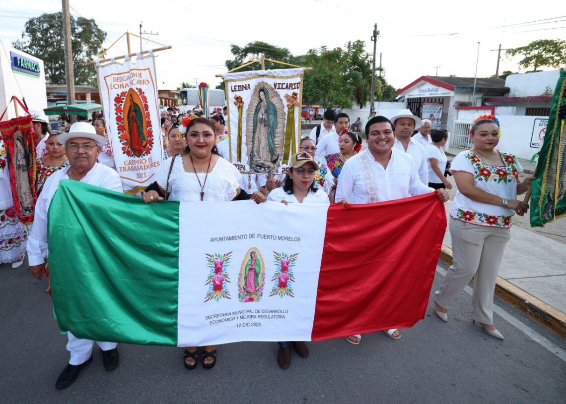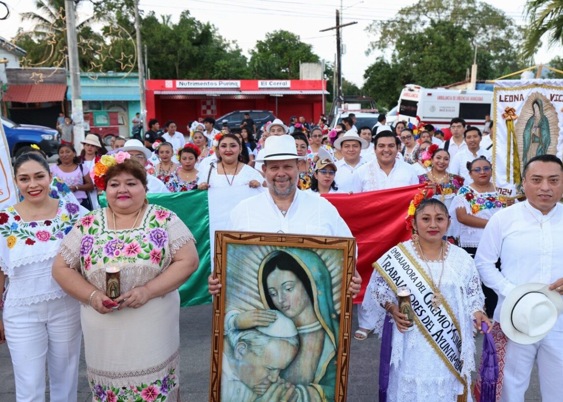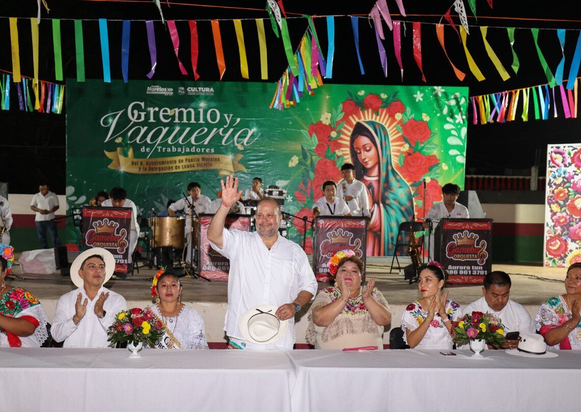 Leona Vicario, Puerto Morelos, Quintana Roo, 12 de diciembre de 2025.– Las calles de Leona Vicario se vistieron nuevamente de color, fe y tradición al celebrar el gremio de trabajadores municipales de esta delegación su procesión anual, misa y vaquería.