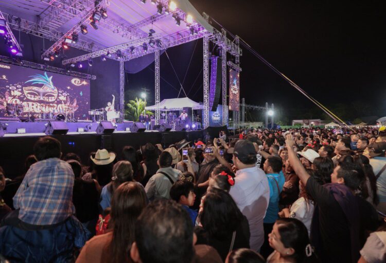 Leona Vicario, Puerto Morelos, Quintana Roo a 15 de febrero de 2026.— En un ambiente de fiesta, tradición y algarabía, la delegación de Leona Vicario vivió un segundo día de Carnaval memorable con la presentación estelar de la agrupación sinaloense Calibre 50, que puso a cantar y bailar a cientos de asistentes al ritmo de sus más grandes éxitos como Contigo, Si te pudiera mentir, Amor del bueno, entre otras.