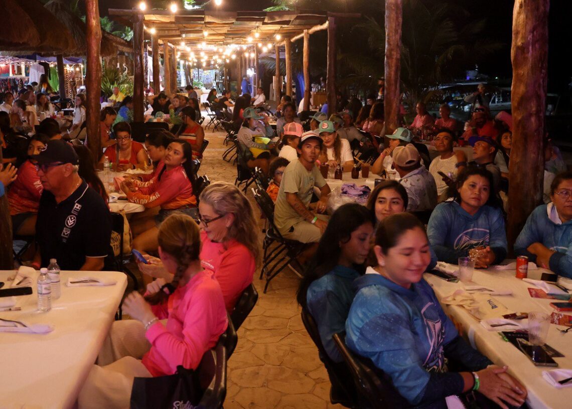 Puerto Morelos, Quintana Roo, 12 de julio de 2024.—Como es tradicional, hoy se realizó la Cena de Capitanas como parte de las actividades programadas en la VII edición del Torneo de Pesca Deportiva Femenil “La Diosa del Mar”, que se realizará mañana con la participación de al menos 22 equipos, incluso de pescadoras de Estados Unidos y Canadá.