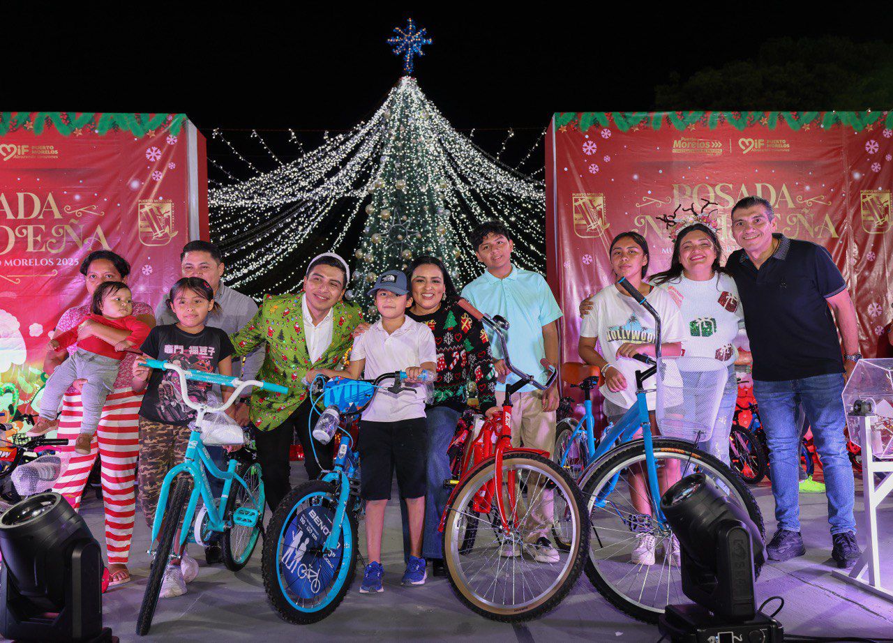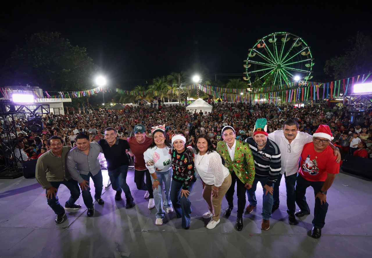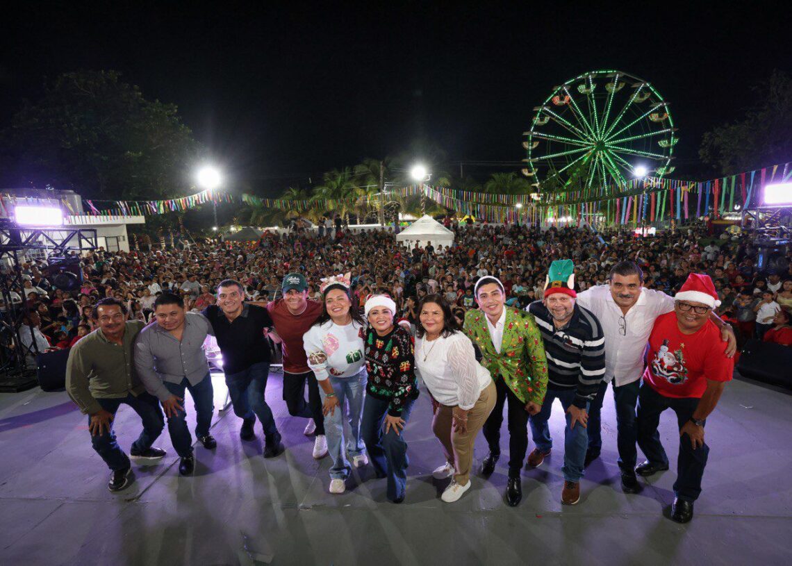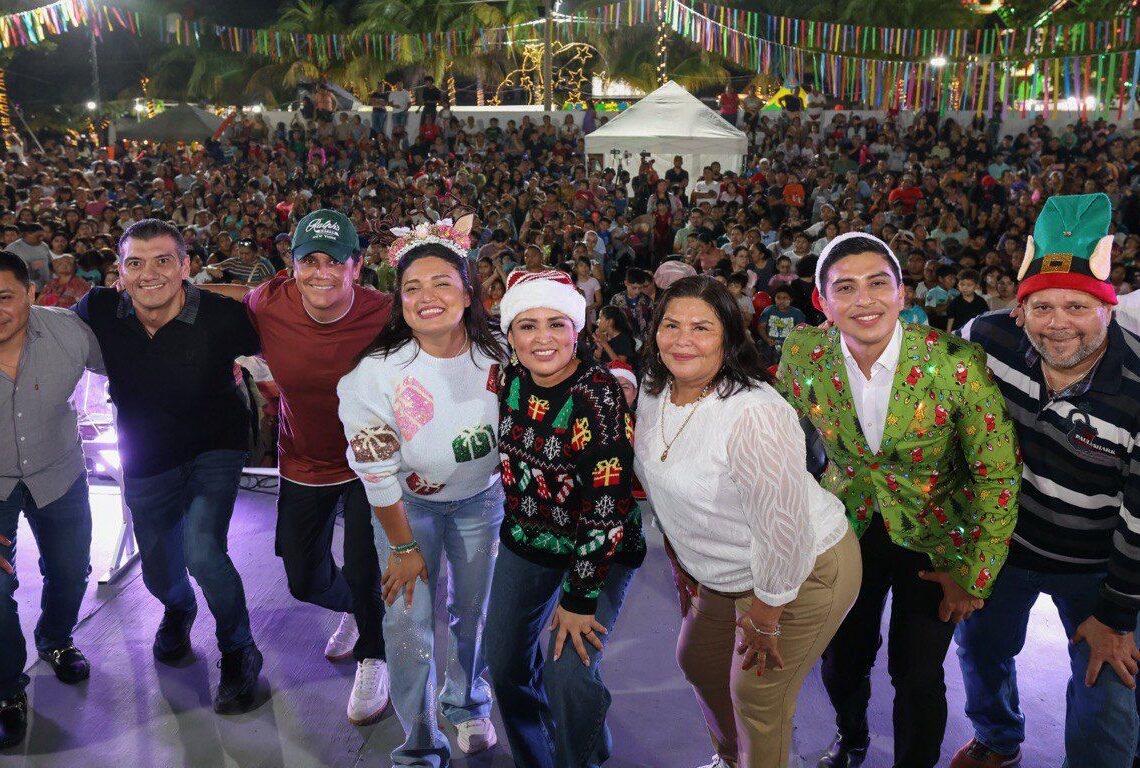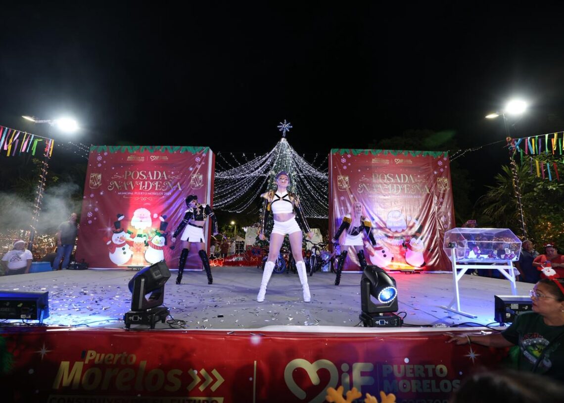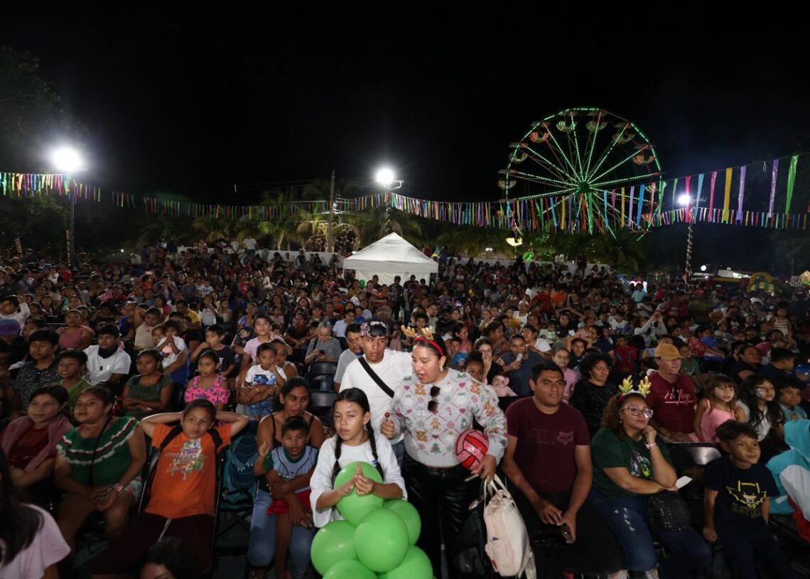 Puerto Morelos, Quintana Roo, 17 de diciembre de 2025.— La magia de la Navidad se vivió con alegría, convivencia y sonrisas en el parque principal de la cabecera municipal, durante la Posada Navideña Puerto Morelos 2025, que reunió a más de 2 mil 500 personas.