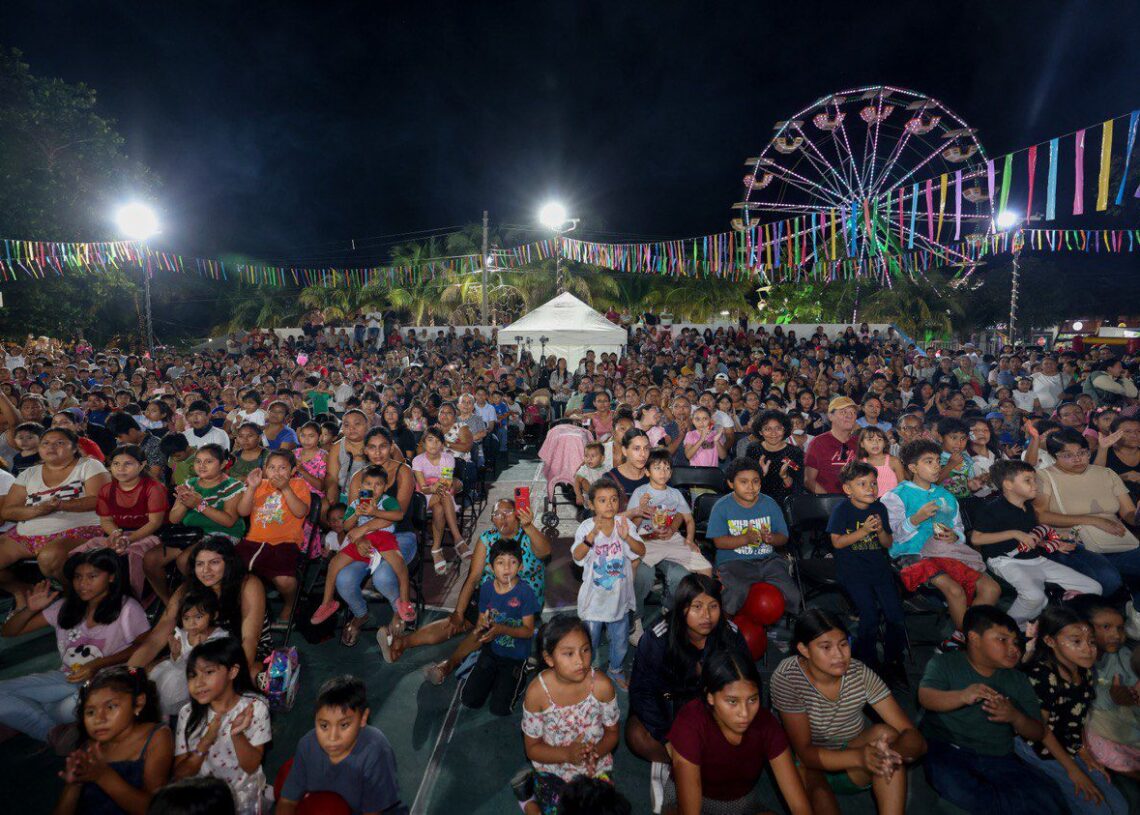El evento, organizado por el Sistema para el Desarrollo Integral de la Familia (DIF) Puerto Morelos, permitió que alrededor de mil 100 niñas y niños, acompañados de sus padres y familiares, disfrutaran de una tarde llena de regalos, música, sorpresas, golosinas, juegos y actividades recreativas.
