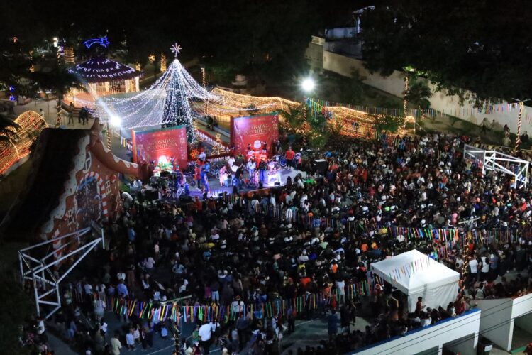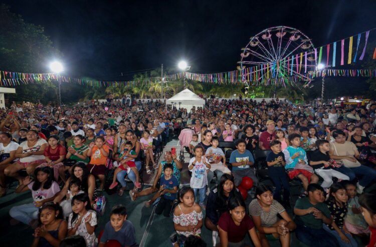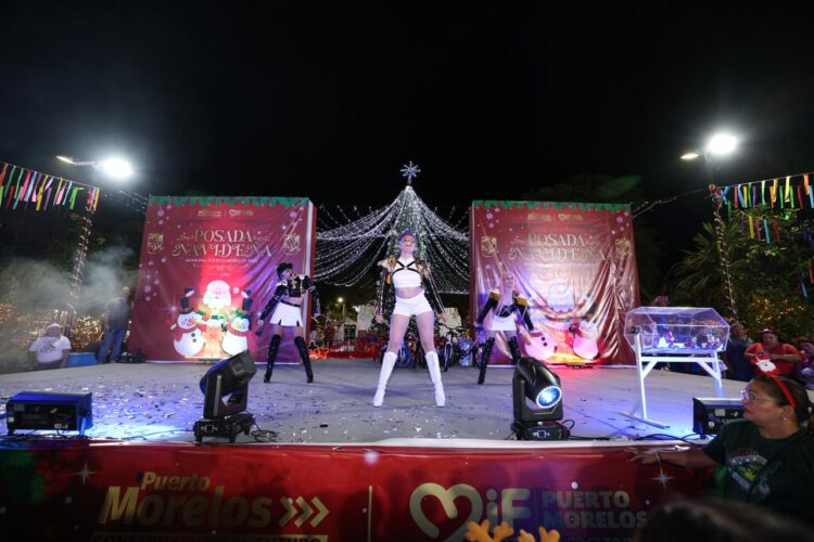 Puerto Morelos, Quintana Roo, 17 de diciembre de 2025.— La magia de la Navidad se vivió con alegría, convivencia y sonrisas en el parque principal de la cabecera municipal, durante la Posada Navideña Puerto Morelos 2025, que reunió a más de 2 mil 500 personas.
