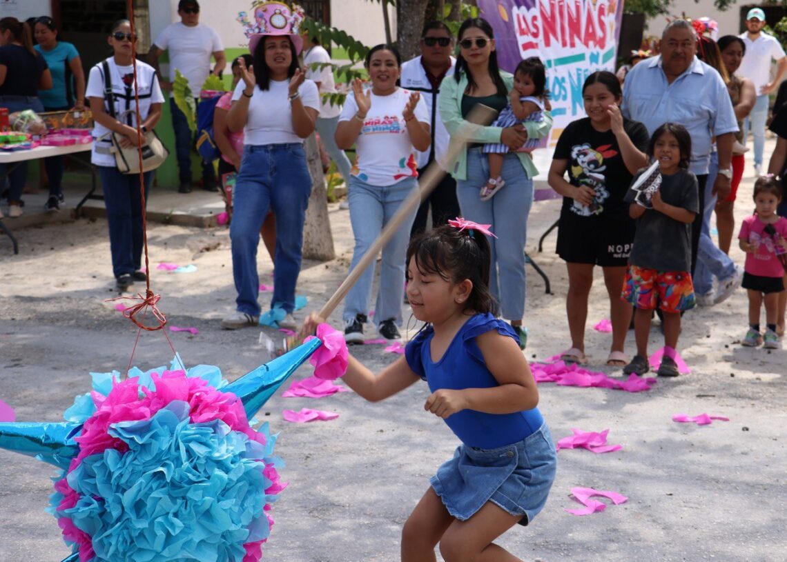 Puerto Morelos, Quintana Roo a 3 de mayo de 2025.- “Nuestras niñas y niños de comunidades apartadas merecen igual que todos, tener oportunidades de salud, educación y por supuesto de diversión, por un desarrollo sano” , dijo Blanca Merari Tziu Muñoz durante los festejos con motivo del Día de las niñas y los niños en comunidades rurales de Puerto Morelos.