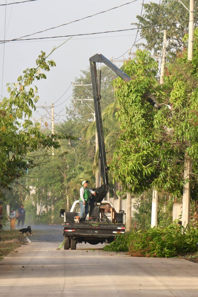 Asimismo, se atendieron reportes ciudadanos mediante trabajos de bacheo en las calles liebre, ardilla y avestruz. Además, se realizaron labores de corte de ramas con la grúa de alumbrado público, a fin de evitar que la vegetación obstruya la iluminación de las lámparas y proteger el cableado.