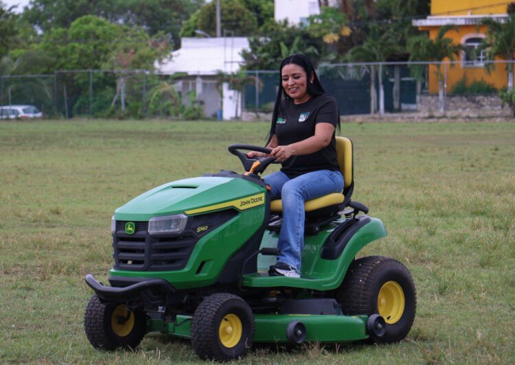La alcaldesa, hizo entrega de un carrito de poda marca John Deere, cuyo valor es de más de $90,000.00 pesos, dos carretillas, escobas y rastrillos para pasto, equipo que facilitará en gran medida la poda de los campos de futbol y beisbol del municipio.