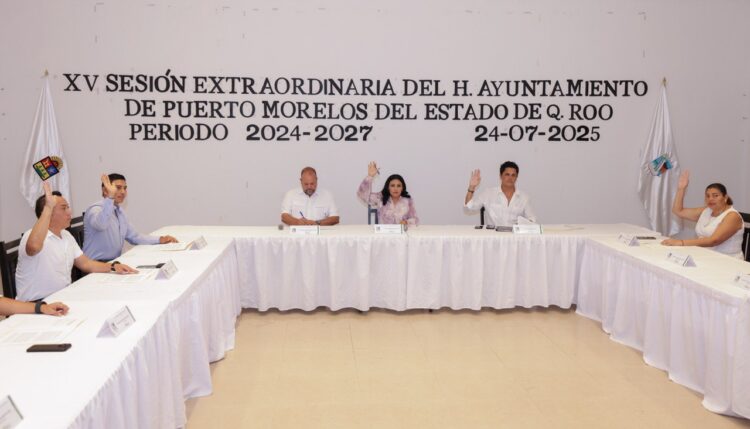 Puerto Morelos, Quintana Roo, 24 de julio de 2025.— En el marco de la XV Sesión Extraordinaria del Cabildo de Puerto Morelos, encabezada por la presidenta municipal Blanca Merari Tziu Muñoz, los concejales aprobaron por unanimidad el cambio de tesorero municipal.