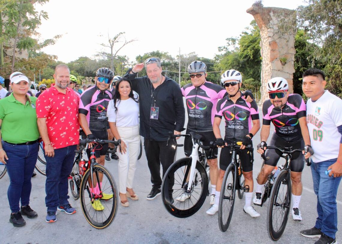 A la llegada del contingente, en el km 0 de la Ruta de los Cenotes, Blanca Merari Tziu, junto con el fundador y promotor de la competencia, Gerardo Alton Ortega; el secretario general del Ayuntamiento, Jesús Espinosa Payán; el secretario de Seguridad Pública y Tránsito, Alfredo Valdez de León; la directora general de Juventud, Aimee Rodríguez Vivas; el titular del Deporte, Miguel Ángel Chimal y el secretario de Turismo, Miguel Cámara Ruiz, se tomaron la foto oficial.