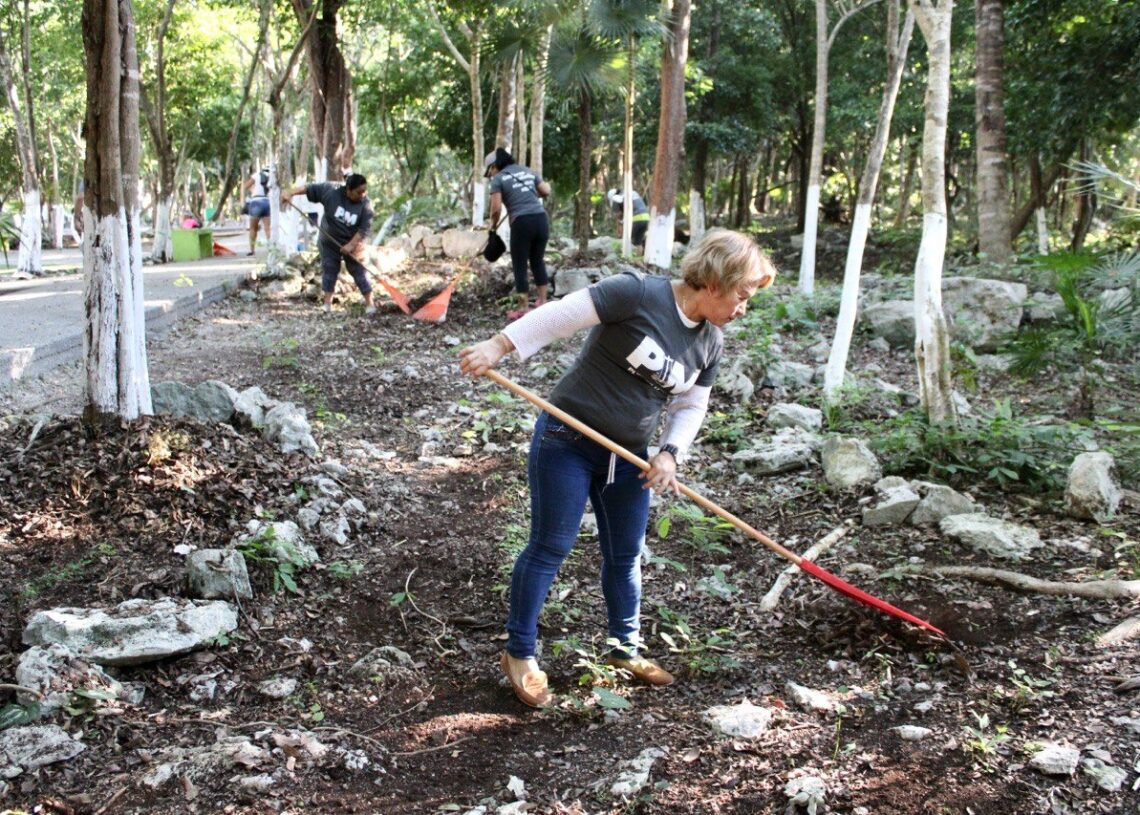 Puerto Morelos, Quintana Roo, 6 de octubre de 2022.— Medio centenar de servidores públicos del DIF, Secretaría Municipal de Desarrollo Económico y Mejora Regulatoria y de Servicios Públicos, encabezados por los titulares de esas dependencias, participaron esta tarde en una segunda jornada de limpieza en el Parque Punta Corcho de esta cabecera municipal.