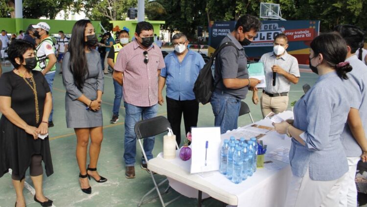 Puerto Morelos, Quintana Roo, 19 de noviembre de 2021.— Con una oferta de más de mil vacantes en 24 empresas participantes, la Secretaría de Desarrollo Económico y Mejora Regulatoria llevó a cabo la Primera Feria Municipal del Empleo, “Creciendo con Puerto Morelos 2021”.