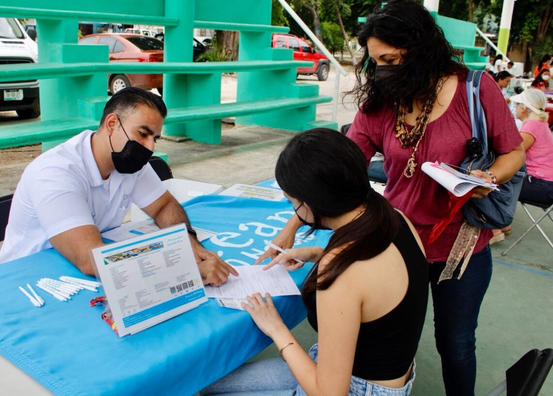 Puerto Morelos, Quintana Roo, 21 de junio de 2022.- Con el propósito de ofrecer más oportunidades de trabajo a las y los portomorelenses, y con ello contribuir a su desarrollo y economía familiar, la Secretaría municipal de Desarrollo Económico y Mejora Regulatoria, en coordinación con empresas de la localidad, organizó hoy la Tercera Feria del Empleo, “Creciendo con Puerto Morelos”, en el domo de la colonia Zetina Gasca.