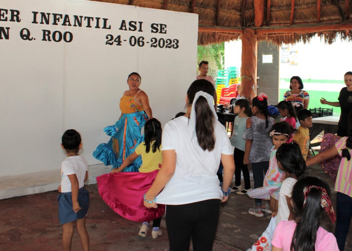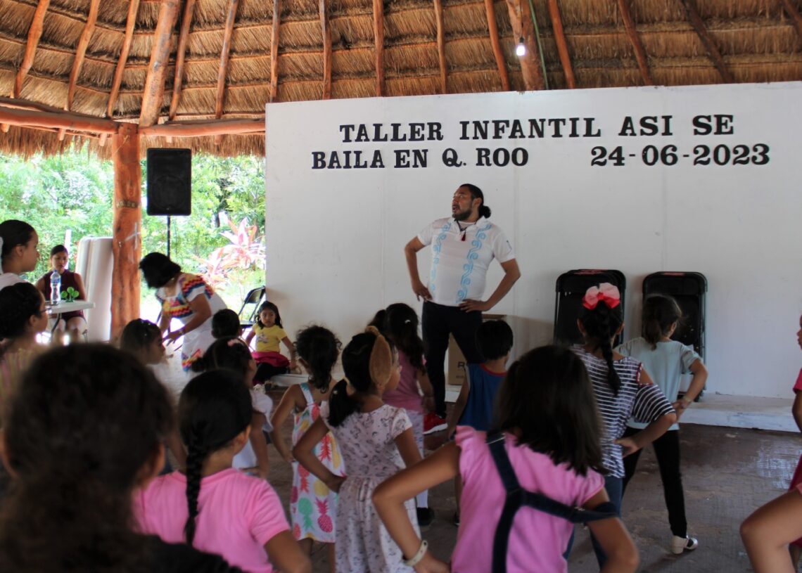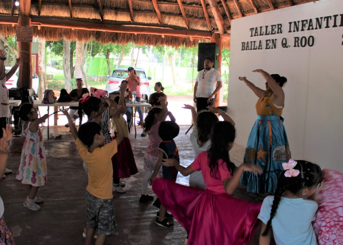 Puerto Morelos, Quintana Roo, 25 de junio de 2026.- Más de 40 niños de Puerto Morelos participaron este fin de semana en el taller infantil “¡Así se baila en Quintana Roo!”, organizado por Instituto de Investigación y Difusión de la Danza Mexicana A. C., en coordinación con el gobierno de Puerto Morelos, a través de la Dirección General de Cultura y las Artes.