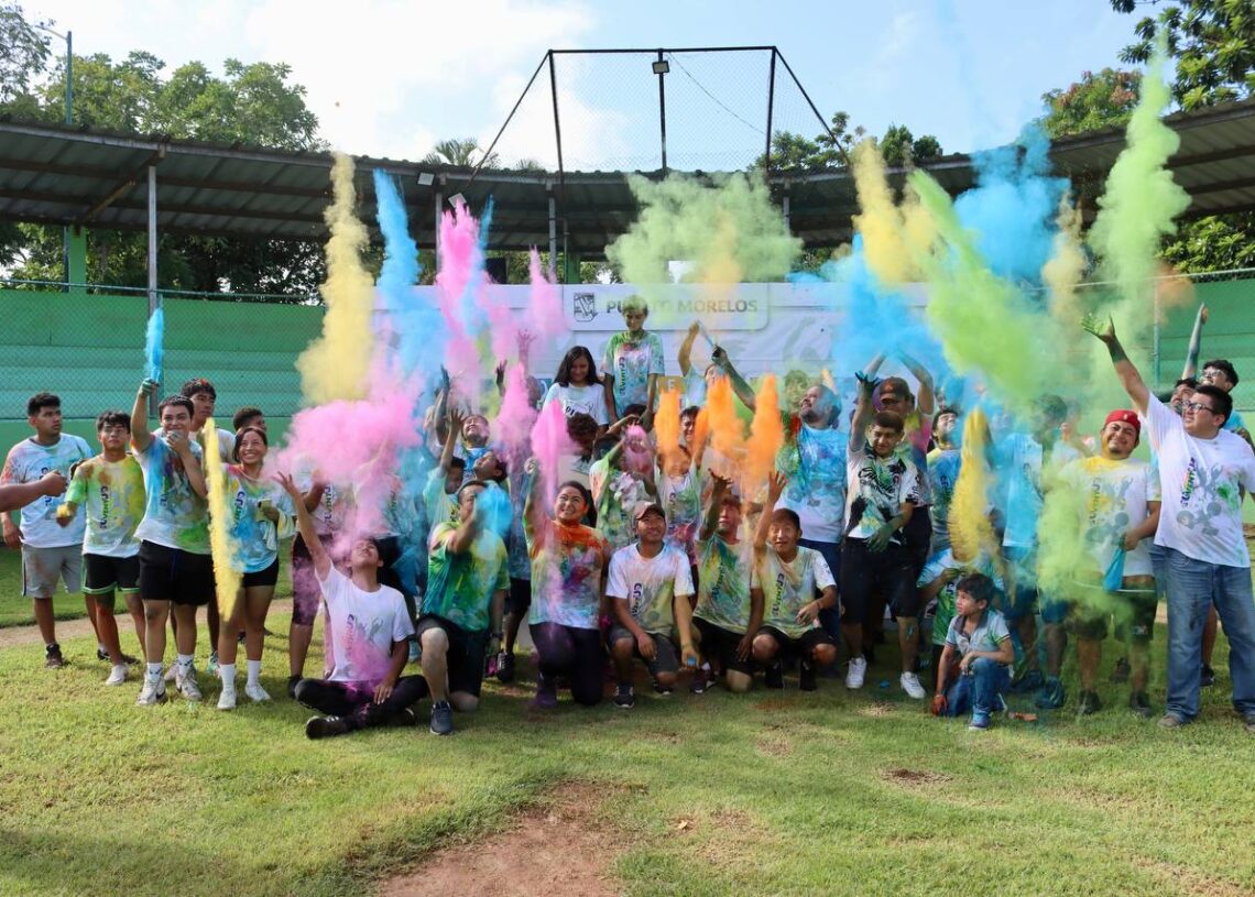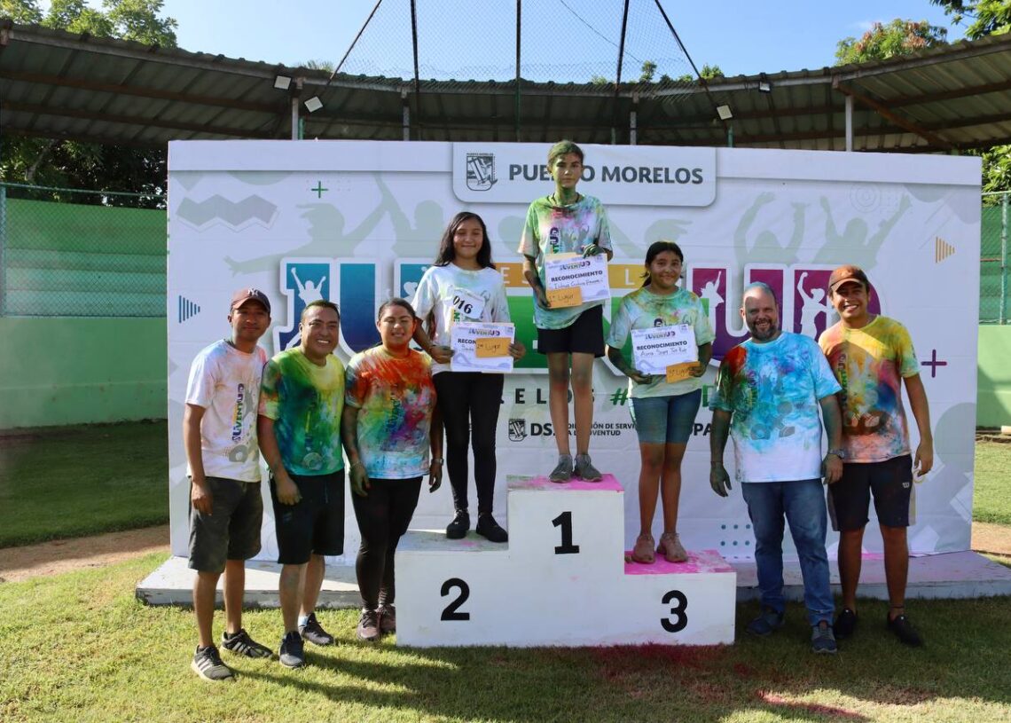 Leona Vicario, Puerto Morelos, Quintana Roo, 25 de agosto.— Con la participación de 60 adolescentes y niños de esta comunidad, esta mañana se realizó la carrera de colores de rol, programada como parte de las actividades del Mes de la Juventud.