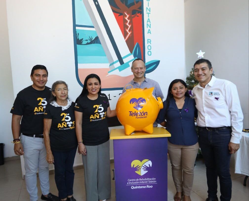 Poco antes, la Alcaldesa depositó su donativo en la alcancía que se puso en la entrada del Palacio Municipal, para recaudar fondos a favor de la Fundación Teletón, que cumple 25 años de ofrecer sus servicios mediante el Centro de Rehabilitación Infantil Teletón (CRIT), que en Quintana Roo lleva 15 años y actualmente brinda terapia a 737 familias cuyos hijos tienen una discapacidad.