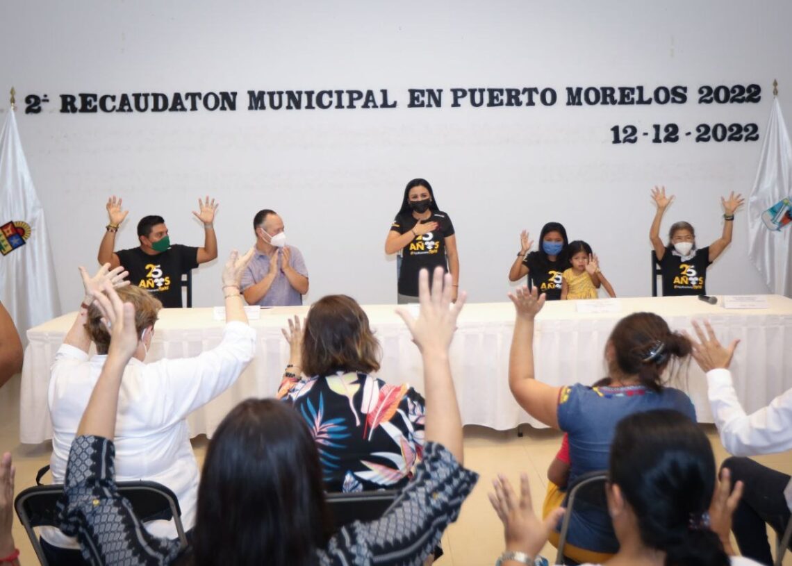 Puerto Morelos, Quintana Roo, 12 de diciembre de 2022.— Fortalecer la inclusión y la coordinación entre sociedad y gobierno, para ayudar a los grupos vulnerables es el reto de mi administración y tendría que ser el reto de todos como seres humanos, comprometidos con las causas justas, dijo la presidenta municipal Blanca Merari Tziu Muñoz al poner en marcha el Segundo Recaudatón Puerto Morelos 2022, en la Sala de Cabildo “José María Morelos y Pavón” del Palacio Municipal.