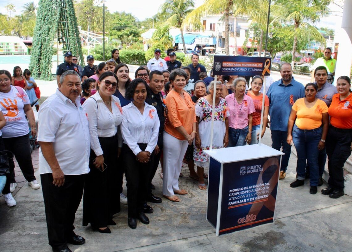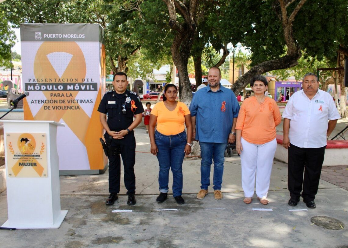 Puerto Morelos, Quintana Roo, 25 de noviembre de 2022.- El gobierno de Puerto Morelos presentó hoy el módulo móvil para la atención a víctimas de violencia familiar y/o por razón de género, el cual se instalará periódicamente en diversos puntos de la cabecera municipal y las comunidades de Leona Vicario, Central Vallarta y Delirios.