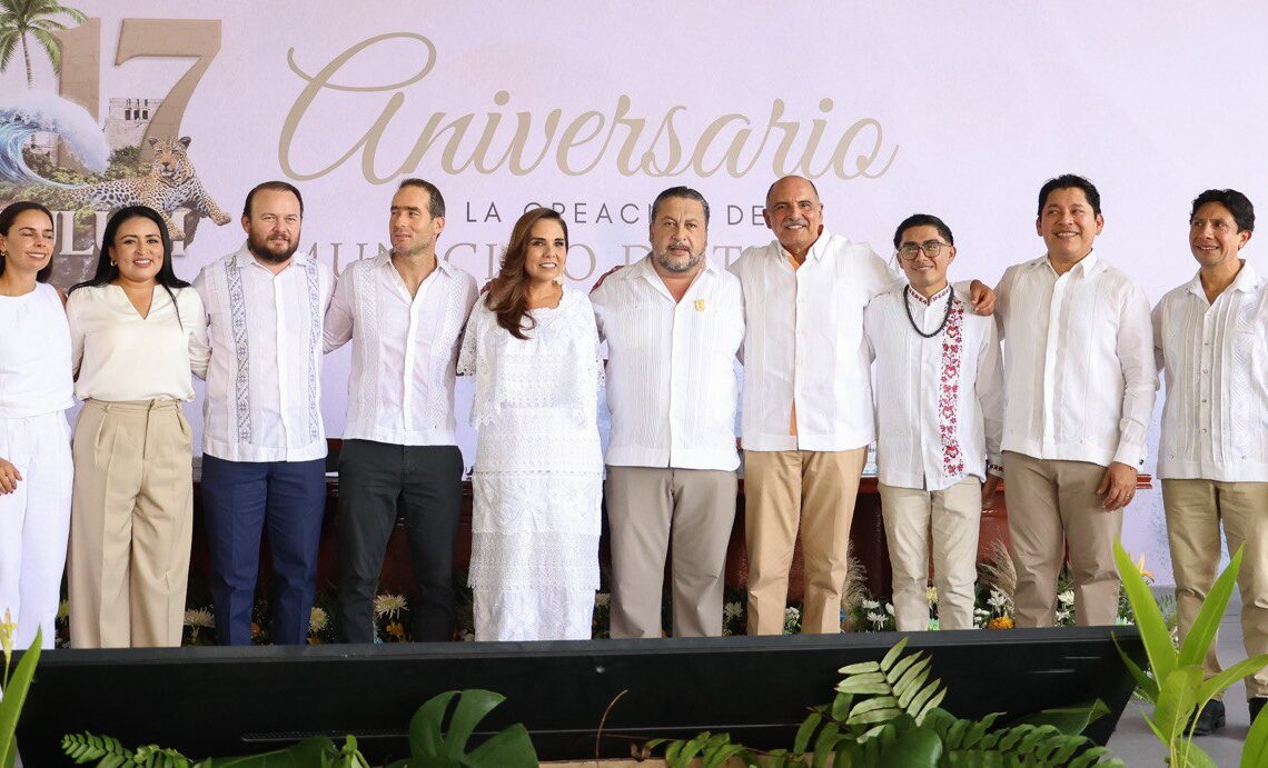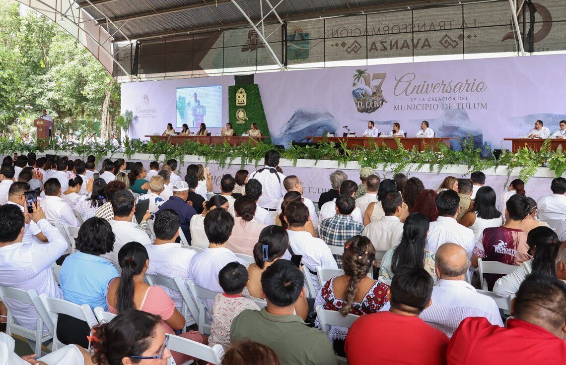Tulum, Quintana Roo, 29 de mayo de 2025.— “Nos congratula ver el crecimiento y desarrollo de un municipio hermano, como lo es Tulum, que tiene una gran historia, como cada rincón de Quintana Roo, y brilla como destino turístico, dando esperanzas a su gente”, expresó Blanca Merari Tziu Muñoz, presidenta municipal de Puerto Morelos, quien asisitió a la Sesión Solemne con motivo del XVII Aniversario de Tulum.