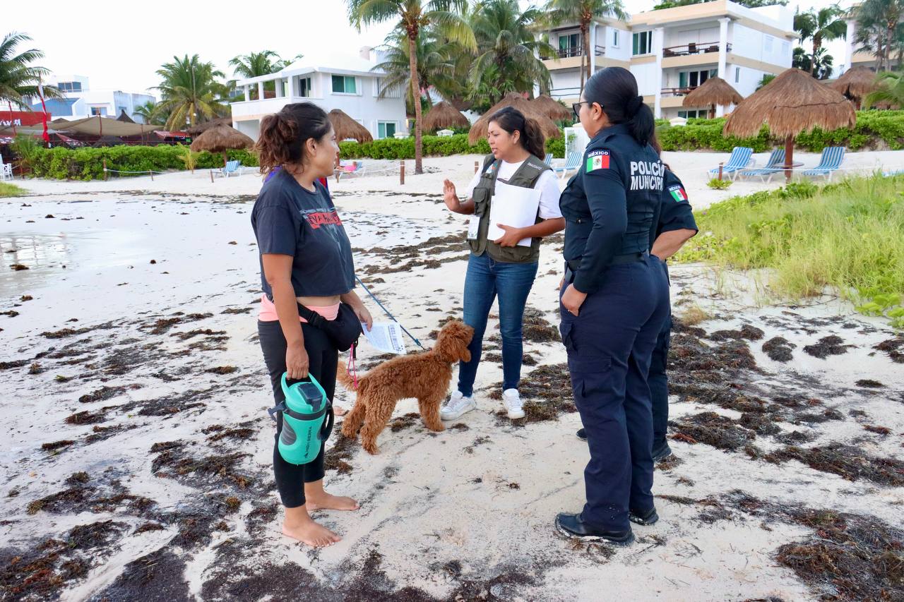 La funcionaria recordó que estas disposiciones se refuerzan porque varias playas del municipio forman parte del Parque Nacional Arrecife de Puerto Morelos, por lo que se debe acatar el Programa de Manejo Ambiental de Mascotas en Zona de Playa, además de que dos playas cuentan con certificación Blue Flag, lo que exige mantener altos estándares de limpieza y calidad ambiental.