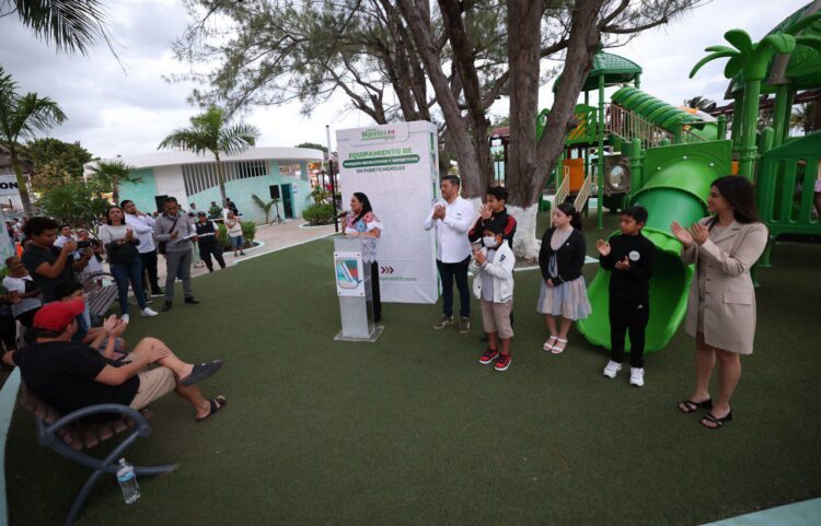 Puerto Morelos, Quintana Roo, 28 de noviembre de 2025.— “En Puerto Morelos seguimos avanzando en la construcción de nuestro futuro con programas como el de equipamiento de espacios deportivos y recreativos, en el que se ejercieron casi 2.5 millones de pesos provenientes del Fideicomiso para la Administración del Derecho de Saneamiento Ambiental (DSA)”, dijo hoy la presidenta municipal Blanca Merari Tziu Muñoz.