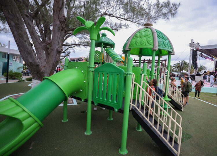 “También se instalaron juegos en el Parque Central de la colonia Zetina Gasca y en Villas La Playa, donde estamos estrenando columpios, giratorios, pasamanos y estructuras muy completas, integrales, pero sobre todo bonitas y seguras, para la sana diversión”, manifestó Blanca Merari.