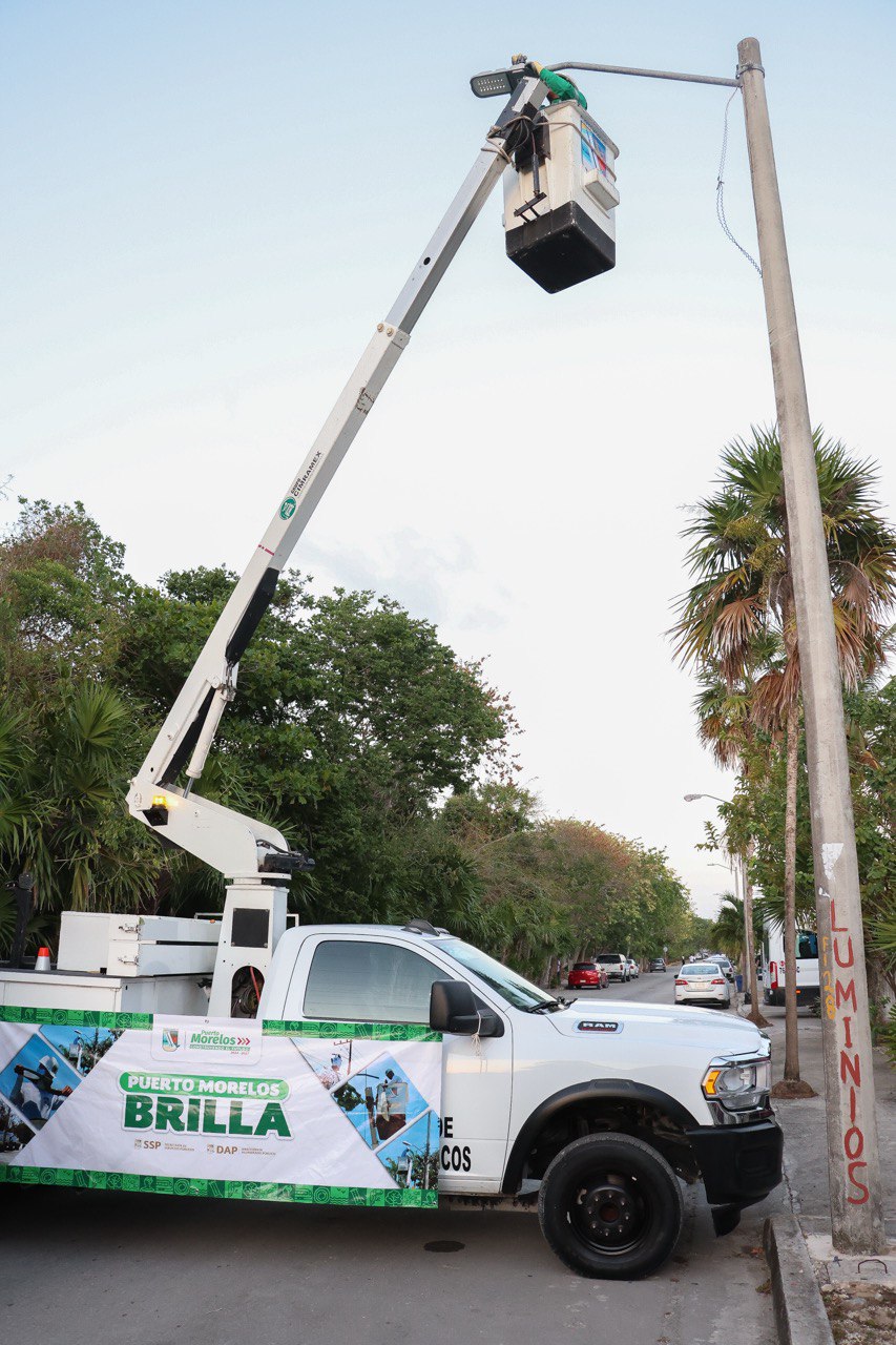Puerto Morelos, Quintana Roo, 26 de diciembre de 2025.— El programa “Puerto Morelos Brilla”, puesto en marcha al inicio del segundo semestre del año con el objetivo de mejorar la calidad de vida de las y los portomorelenses y fortalecer la experiencia turística de quienes visitan el municipio, registra un avance superior al 80 por ciento. Se prevé cumplir la meta de renovar mil 200 lámparas de alumbrado público durante el presente año, informó la presidenta municipal Blanca Merari Tziu Muñoz.