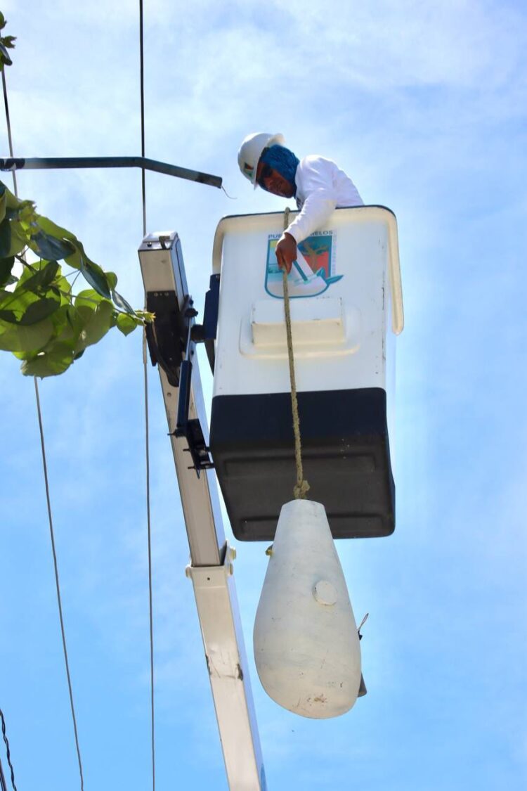 Por su parte, el secretario de Servicios Públicos, Leonel Salazar Trejo, confirmó que el programa “Puerto Morelos Brilla” fue diseñado con el objetivo de sustituir todas las luminarias OV-15 instaladas en el municipio, las cuales son contaminantes debido a que funcionan con balastro. En su lugar, se colocan lámparas tipo LED que cumplen con la Norma Oficial Mexicana NOM-031-ENER-2019.