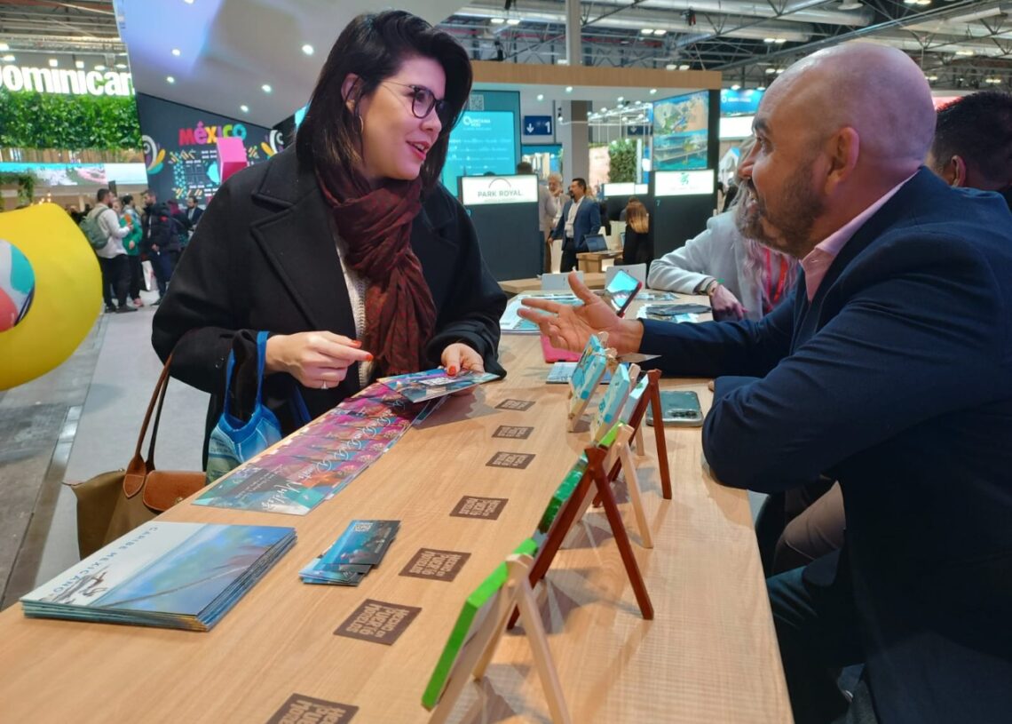 Este viernes, la delegación de Puerto Morelos, encabezada por la presidenta Blanca Merari Tziu, sostuvo encuentros de negocios en el recinto ferial IFEMA Madrid, sede de la Fitur 2023, con la agencia brasileña Viagens Promo, para promover el destino en este importante mercado sudamericano.