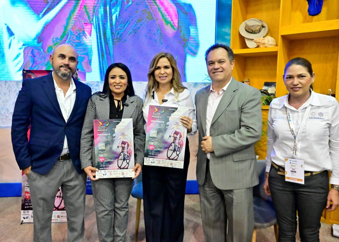 Ciudad de México, 28 de marzo de 2023.- El circuito semi profesional y amateur de ciclismo más grande del mundo llegará a Puerto Morelos el próximo 23 de abril, a través del Gran Fondo World Tour, anunció la presidenta municipal Blanca Merari Tziu Muñoz, durante la segunda jornada de trabajo en el Tianguis Turístico de México 2023, que se desarrolla en esta ciudad.