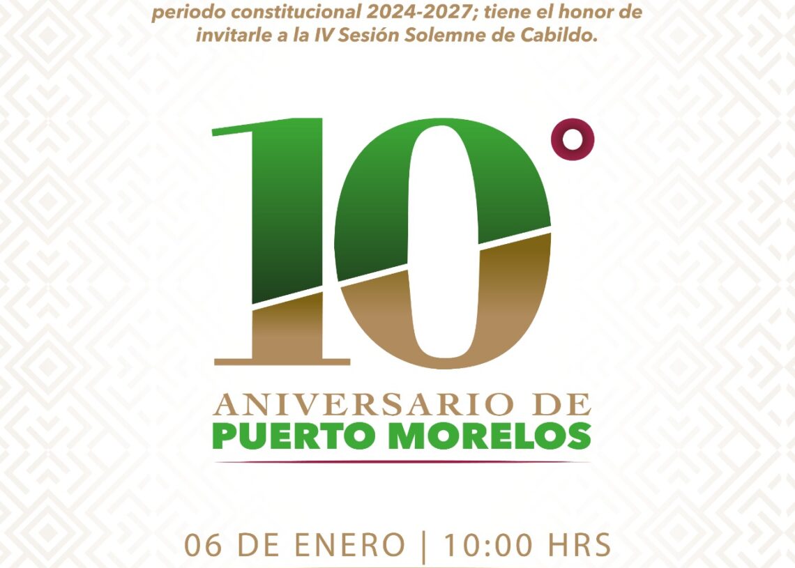 Puerto Morelos, Quintana Roo, 2 de enero de 2026.— “El municipio de Puerto Morelos está listo para celebrar el próximo martes 6 de enero el 10º aniversario de su creación, con eventos cívicos y artísticos en los que se hará patente el orgullo de todos los que a diario trabajamos para hacer de este un mejor lugar para vivir”, manifestó la presidenta municipal Blanca Merari Tziu Muñoz.