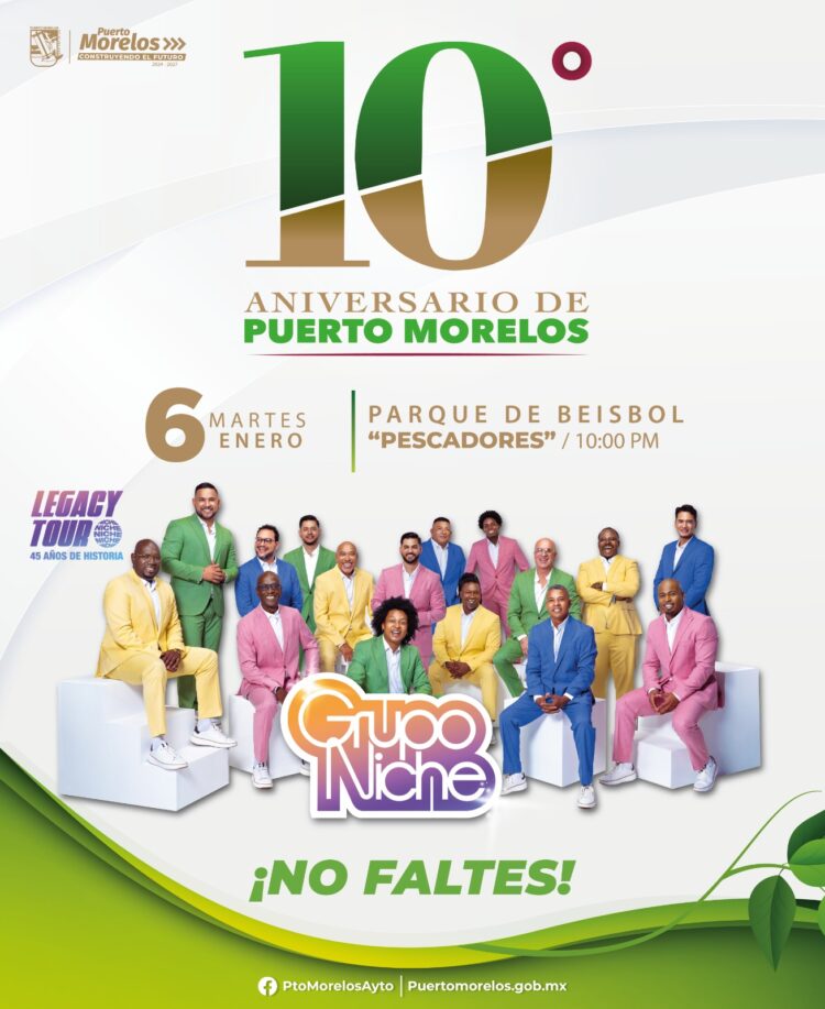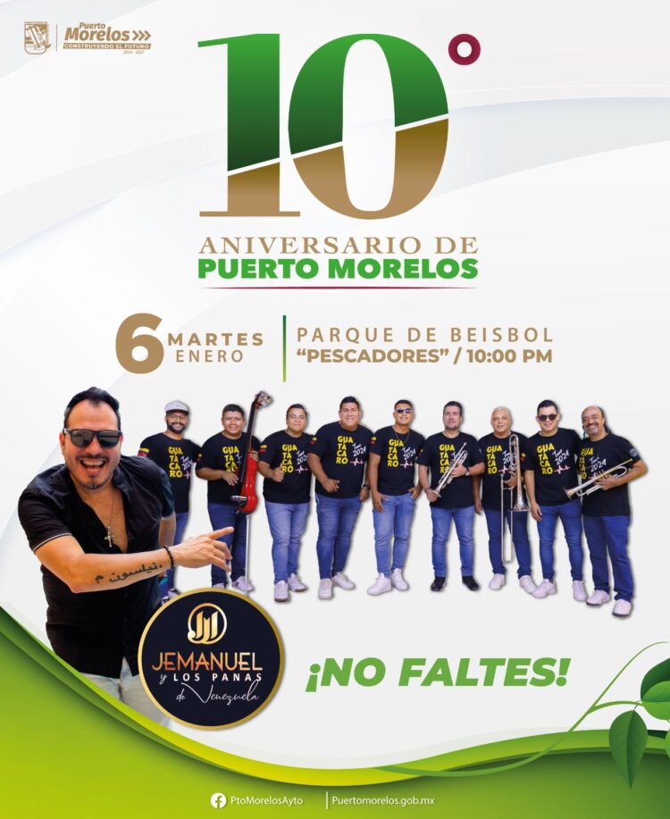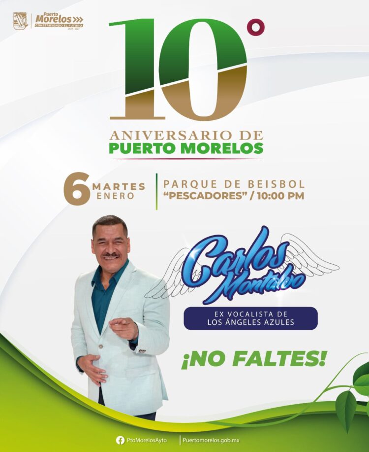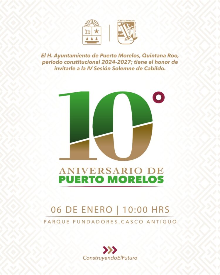 Puerto Morelos, Quintana Roo, 2 de enero de 2026.— “El municipio de Puerto Morelos está listo para celebrar el próximo martes 6 de enero el 10º aniversario de su creación, con eventos cívicos y artísticos en los que se hará patente el orgullo de todos los que a diario trabajamos para hacer de este un mejor lugar para vivir”, manifestó la presidenta municipal Blanca Merari Tziu Muñoz.