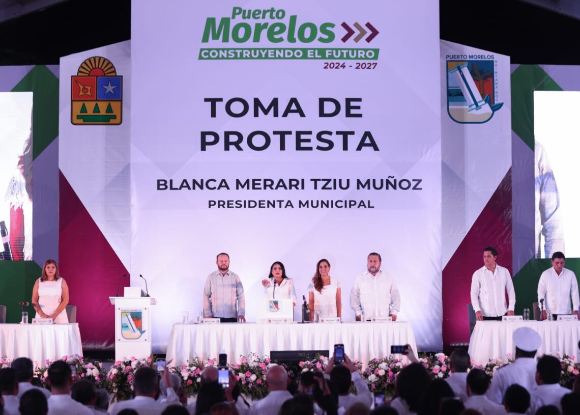 Puerto Morelos, Quintana Roo, 30 de septiembre de 2024.- Puerto Morelos está listo para dar el siguiente paso y contar una nueva historia, para seguir transformándose con una agenda clara para los siguientes tres años y garantizar bienestar a las próximas generaciones, señaló Blanca Merari Tziu Muñoz durante la primera Sesión Pública y Solemne de Cabildo, en la que rindió protesta como Presidenta Municipal para el periodo constitucional 2024-2027.