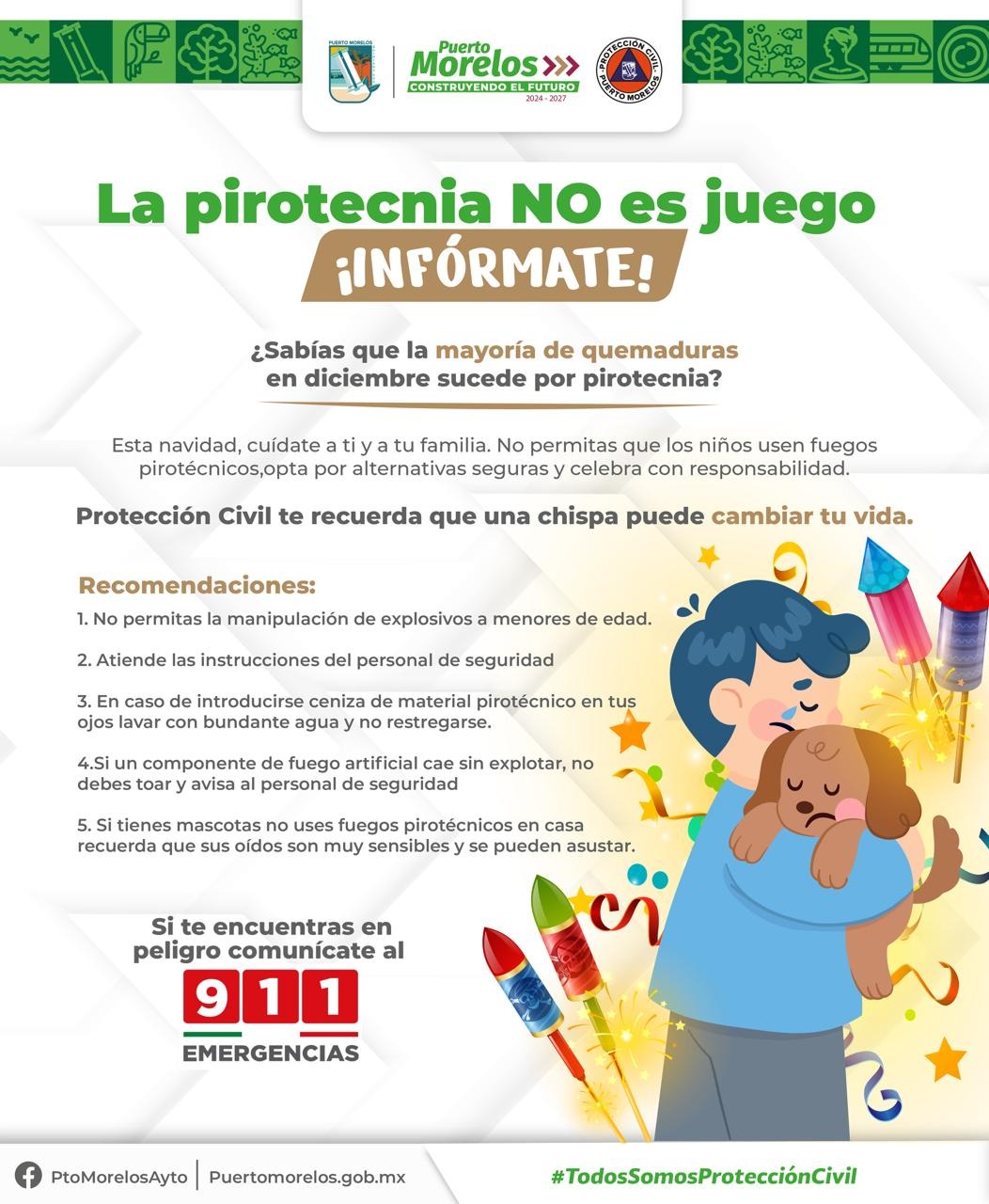 PUERTO MORELOS SE SUMA AL LLAMADO PARA EVITAR EL USO DE PIROTECNIA Y PROTEGER A GRUPOS VULNERABLES