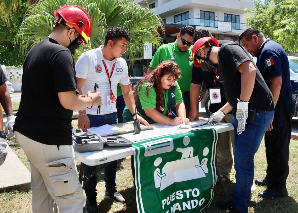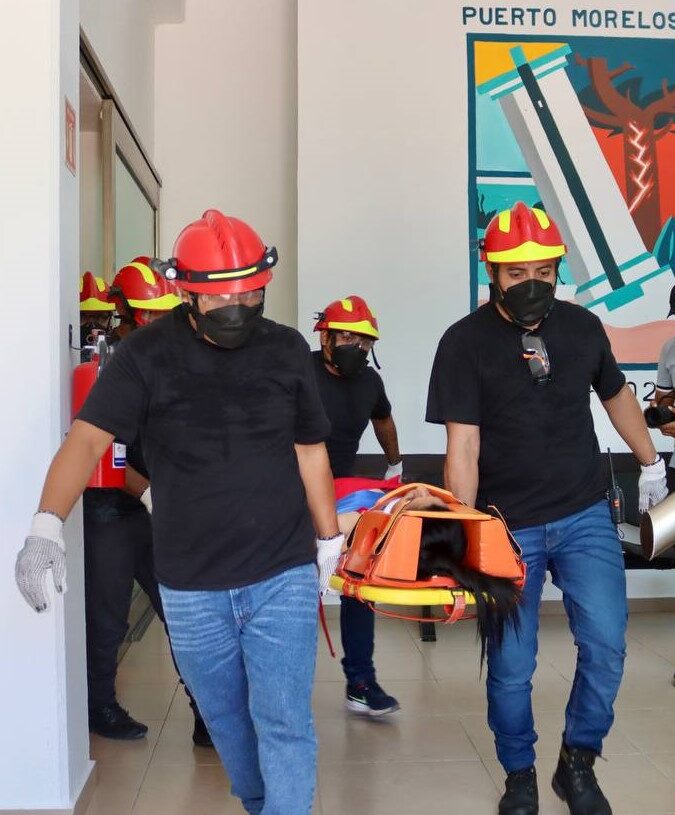 Puerto Morelos, Quintana Roo, 19 de septiembre de 2023.- El gobierno de Puerto Morelos se sumó hoy al Segundo Simulacro Nacional 2023, organizado en el marco del Día Nacional de Protección Civil, con la hipótesis de un colapso de estructura luego de una explosión en el Palacio Municipal, y en el que participaron diversas áreas de la administración local.