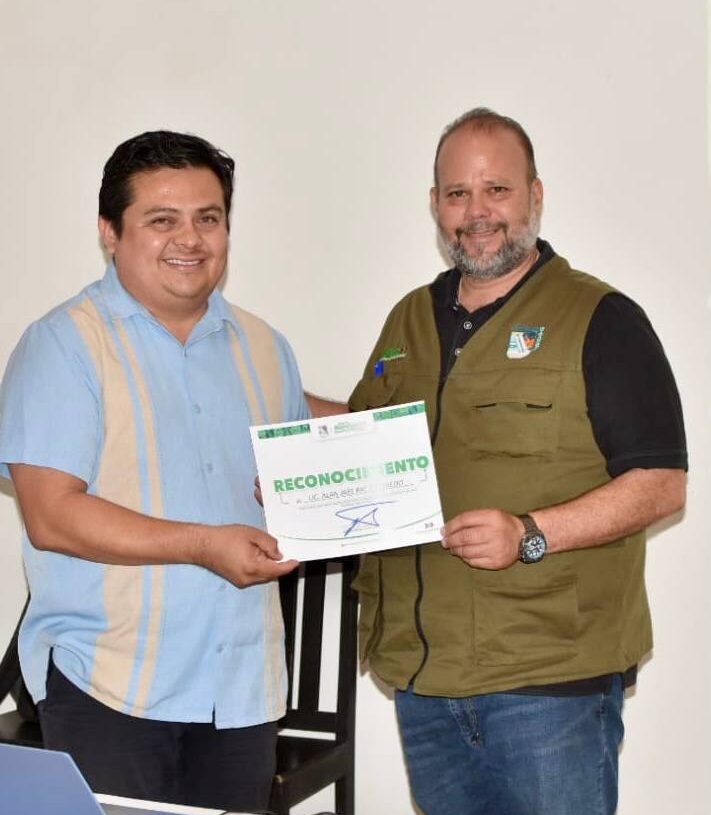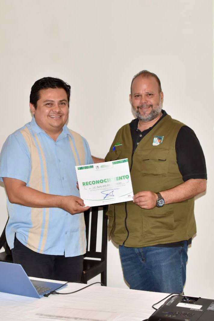 Al final de la Conferencia Espinosa Payán, entregó un reconocimiento al visitador de Derechos Humanos Alan Pat Escobedo por su colaboración en esta campaña.