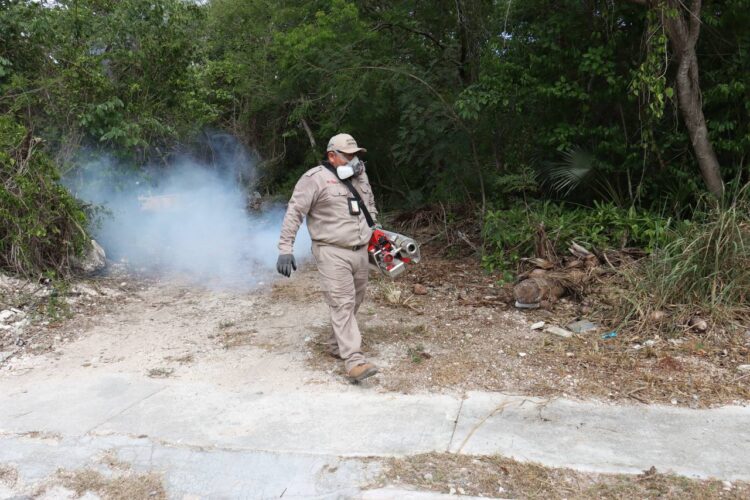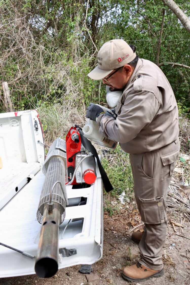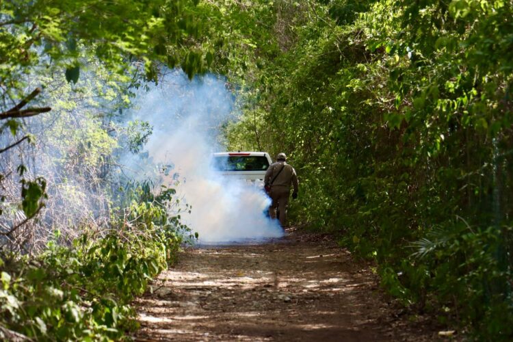 Dagoberto García, jefe de sector del Departamento de Enfermedades Transmitidas por Vector de la Sesa en Puerto Morelos, informó que entre las acciones en marcha destacan las termonebulizaciones, diseñadas para reducir la presencia del mosco aedes aegypti adulto en la periferia de la cabecera municipal.