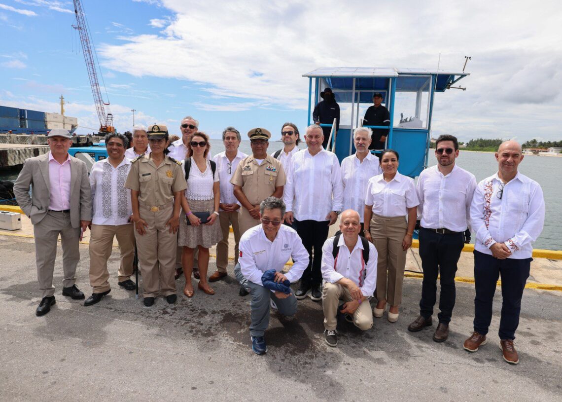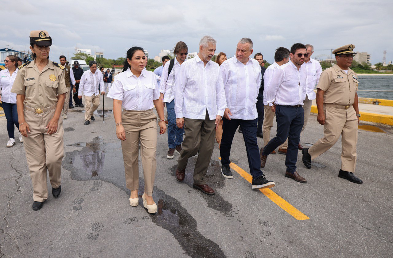 Los visitantes también fueron recibidos en el Muelle Fiscal por el titular de la Secretaría del Medio Ambiente del gobierno del Estado, Óscar Rébora, y por Víctor Manuel Vidal Martínez, titular del Instituto Mexicano de Investigaciones en Pesca y Acuacultura.