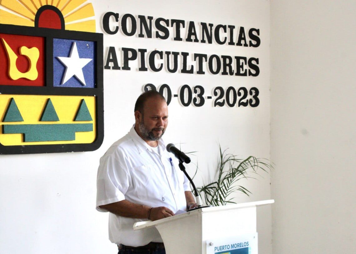 Leona Vicario, Quintana Roo, 30 de marzo de 2023.— La administración de la presidenta municipal Blanca Merari Tziu Muñoz asumió desde el principio el compromiso de fortalecer en forma permanente la organización de los apicultores, con logros como la conformación de Dzidzilkaab, Sociedad Cooperativa de RL, y el aumento de la producción, que ya está certificada, manifestó el secretario general del Ayuntamiento, José de Jesús Espinosa Payán.