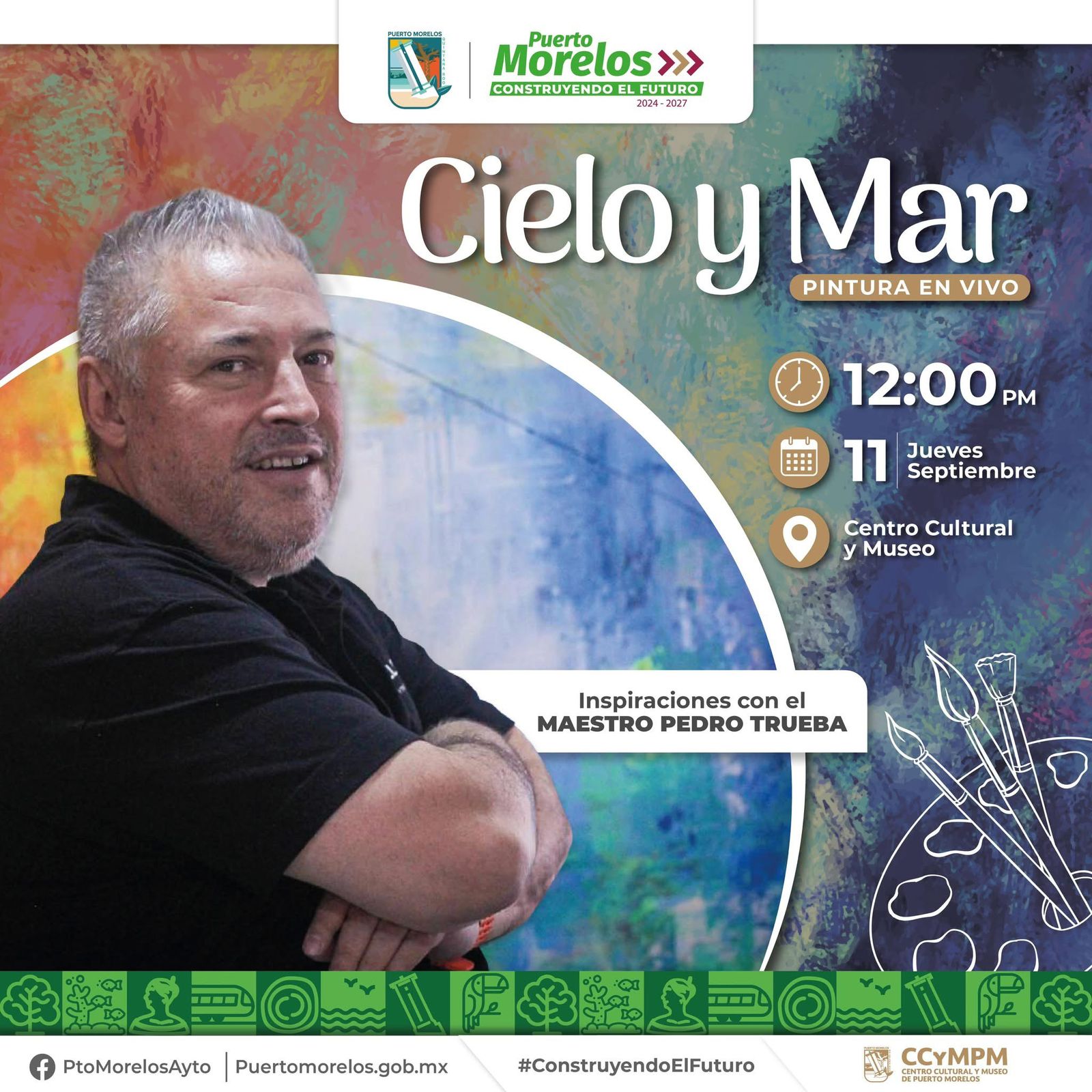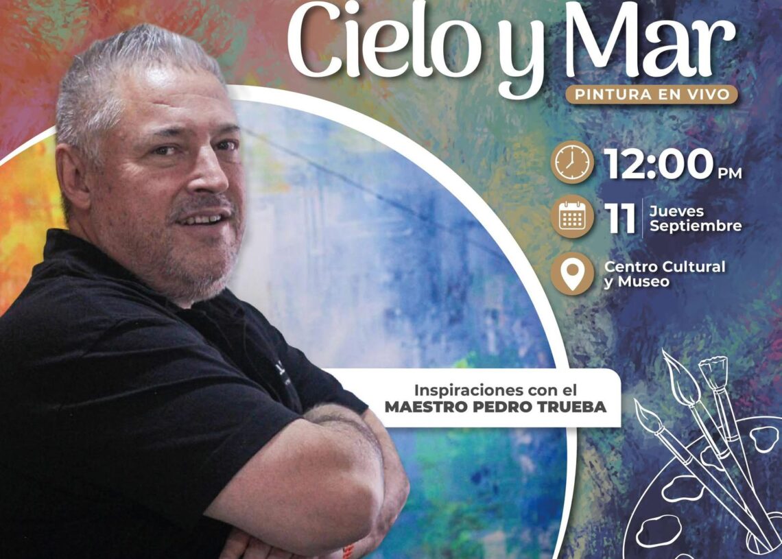 *El Centro Cultural y Museo de Puerto Morelos presentará este próximo jueves 11 de septiembre el evento “Cielo y Mar: Pintura en Vivo. Inspiraciones con Pedro Trueba”, en punto de las 12 de día para presenciar la realización de la obra del artista plástico