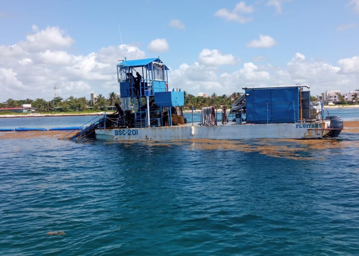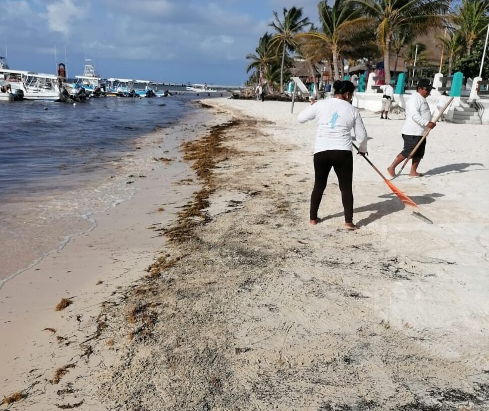 “Estamos levantando de 12 a 14 toneladas diarias de sargazo con nuestra maquinaria y de manera manual, a lo que se suma lo que está sacando la Marina en aguas someras, lo que da un total de 20 toneladas”, dijo Leonel Salazar.