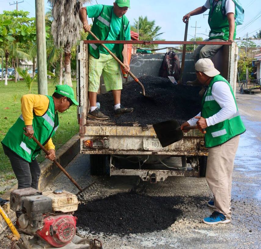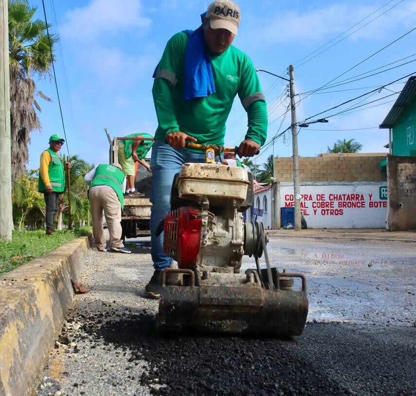 Puerto Morelos, Quintana Roo, 5 de mayo de 2025.— A fin de tener una red vial segura para la comunidad, la presidenta municipal Blanca Merari Tziu Muñoz giró instrucciones a la Secretaría de Servicios Públicos, que lleva a cabo un programa de bacheo y repavimentación en calles y avenidas en mal estado, además de dar mantenimiento a terracerías guarniciones y banquetas.